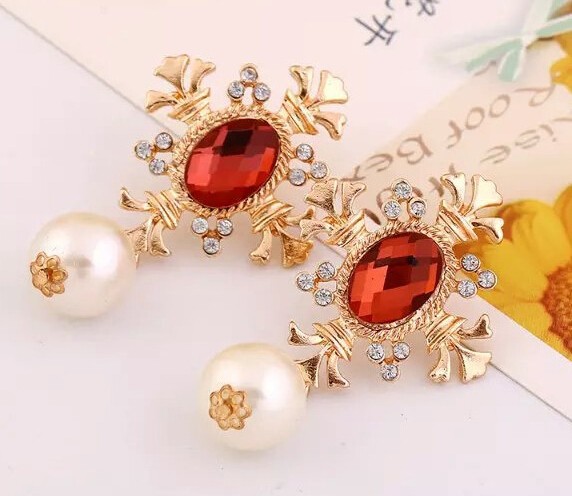 新品 アンティーク調ゴシック百合十字架ストーンパールピアス