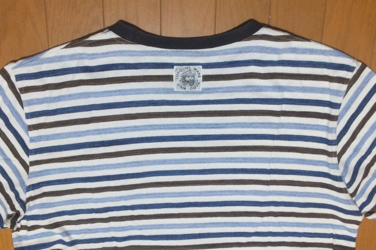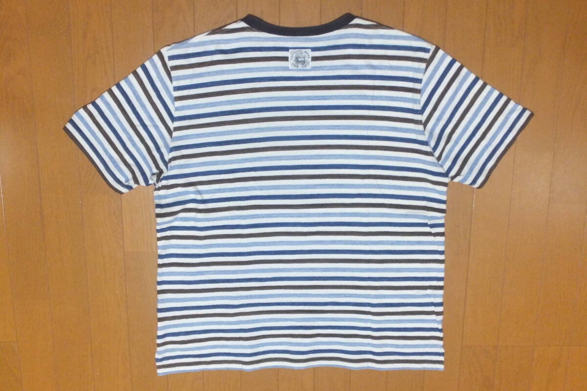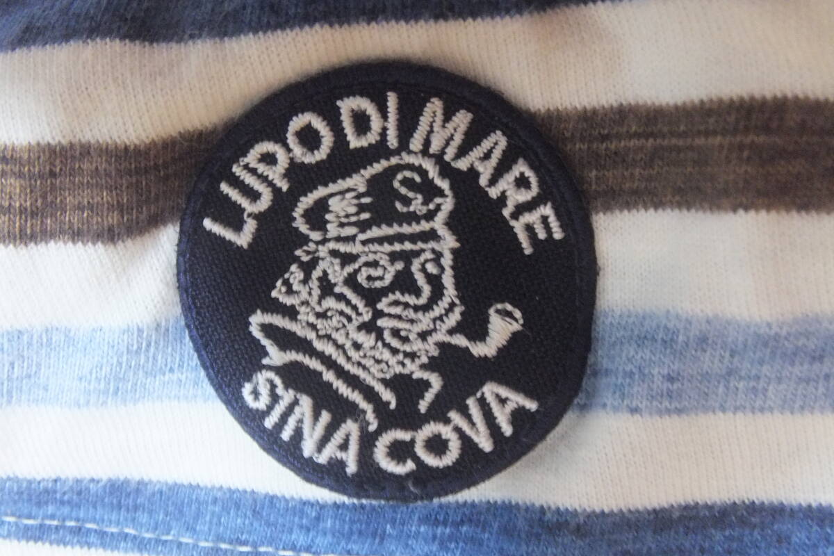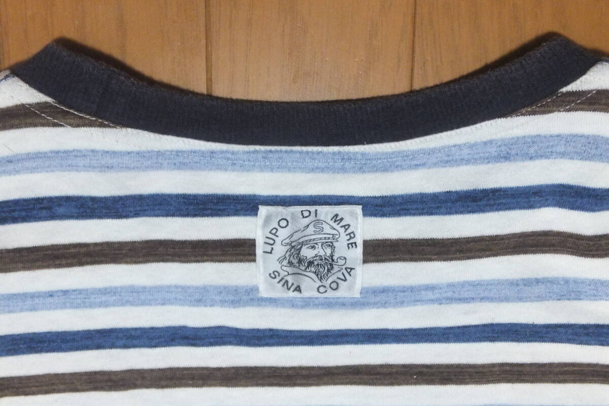 中古・カスタム 【シナコバ 半袖 Tシャツ LLサイズ 白色系ボーダー】 ホワイト系 XL 《襟の内側のタグを外側へ移動》 イカリのワッペン (9.2cm×8.5cm) 日本製 Made In Japan SINA COVA | |