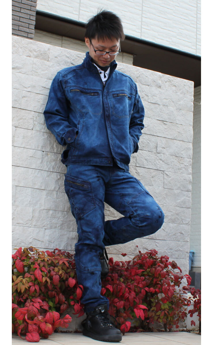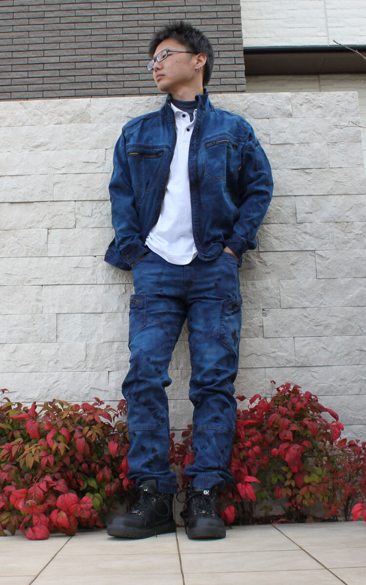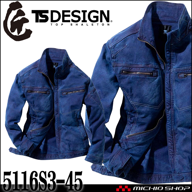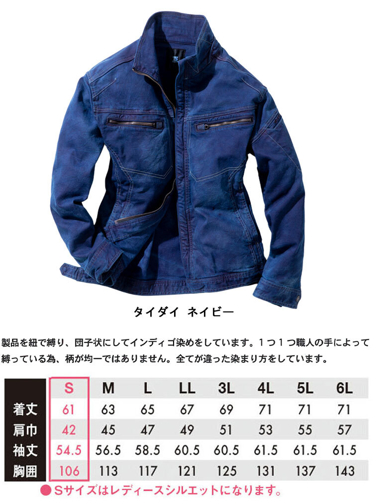 [在庫処分] 作業服 通年 TS DESIGN 匠シルバー インディゴ染めジャケット 5116S3 Sサイズ 45タイダイネイビー