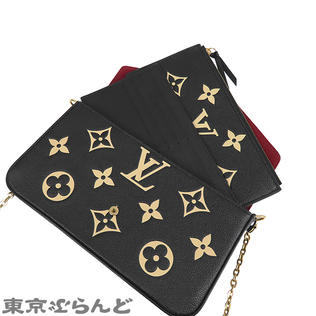 101815072 ルイヴィトン ポシェット フェリシー M80482 ブラックxベージュ モノグラムアンプラント チェーンショルダーバッグ ウォレット