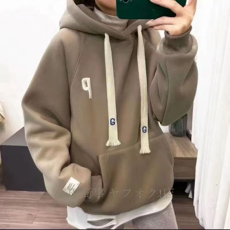 ☆新品裏起毛トレーナー レディース トップス 厚手 フードパーカー フード付き 大きいサイズ 刺 秋冬 秋服 冬服 長袖 5色L-4XL