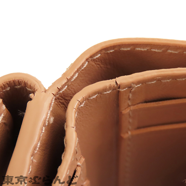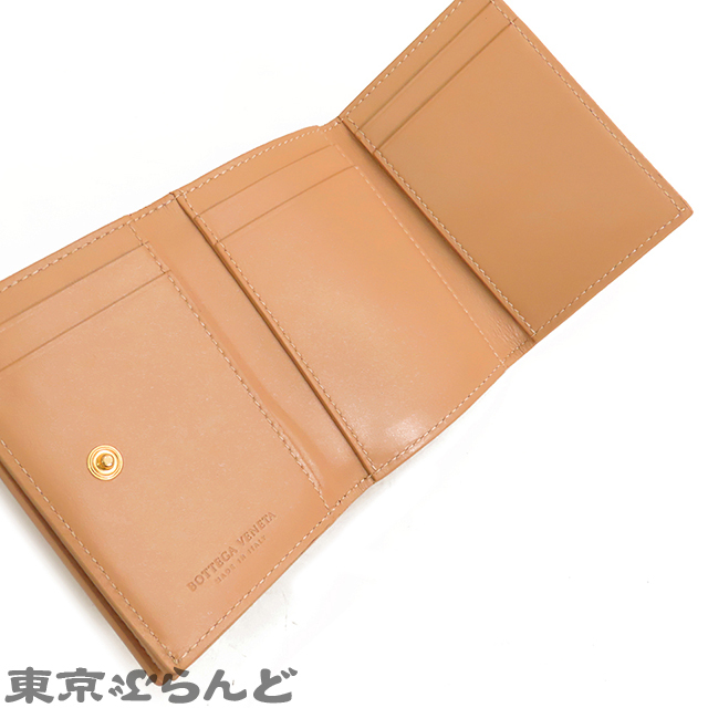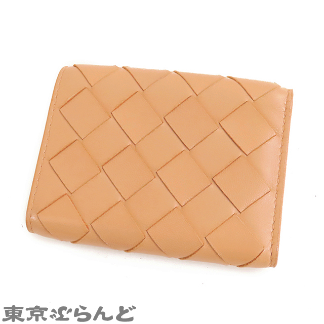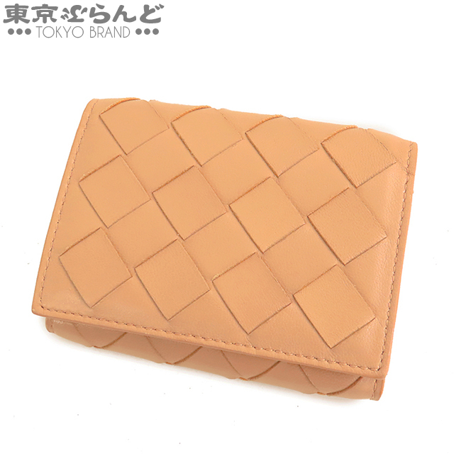 101803092 ボッテガヴェネタ BOTTEGAVENETA イントレチャート コンパクトウォレット ベージュ レザー 三つ折り財布 レディース