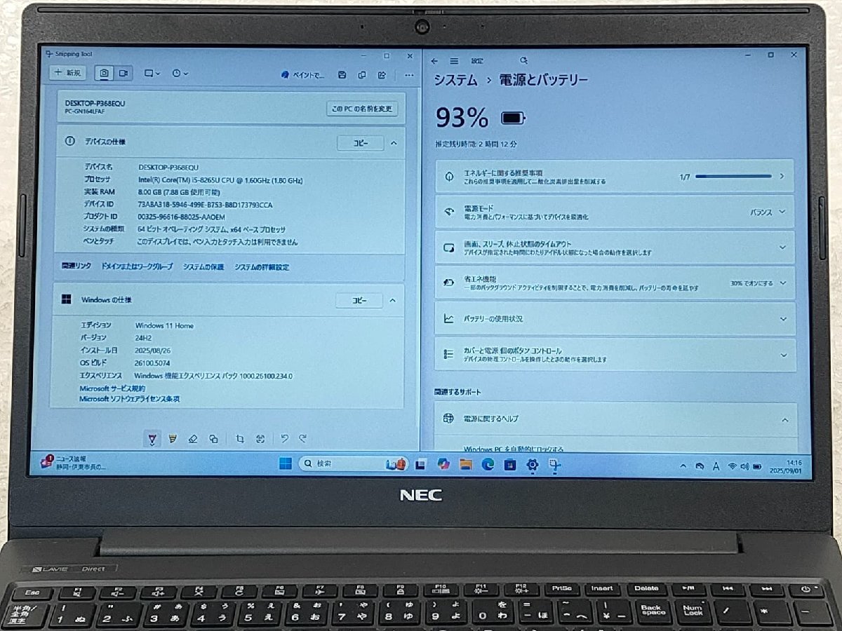 ●【難あり】NEC Lavie Direct PC-GN164LFAF / i5-8265U / 8GBメモリ / 1TB HDD / 15.6型 / Windows 11 Home【 ノートパソコンITS JAPAN 】