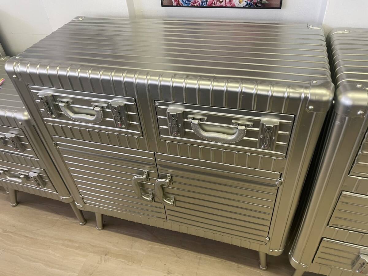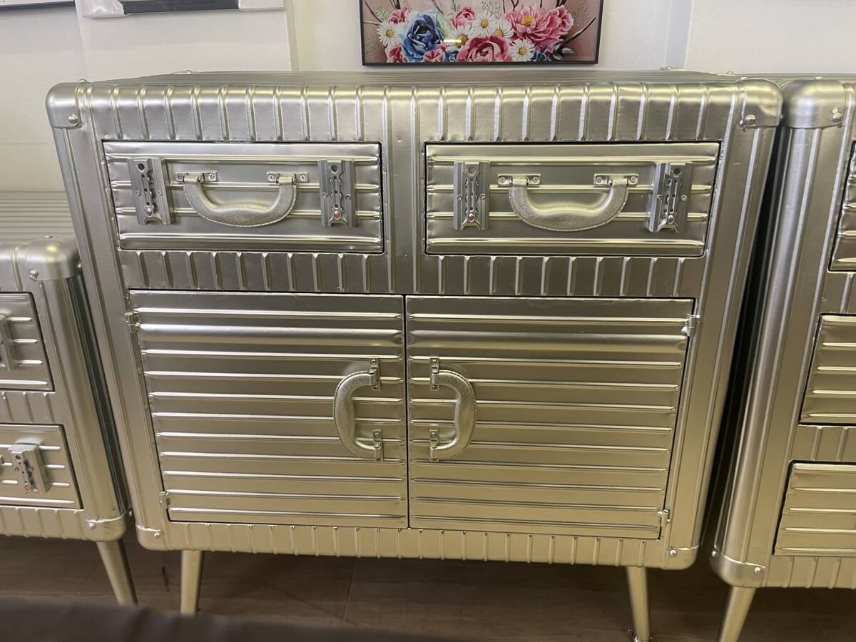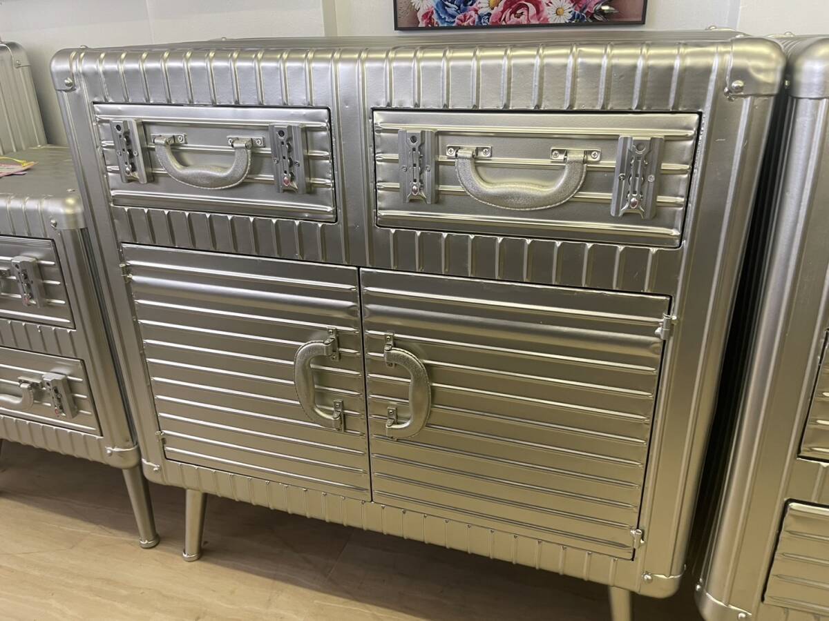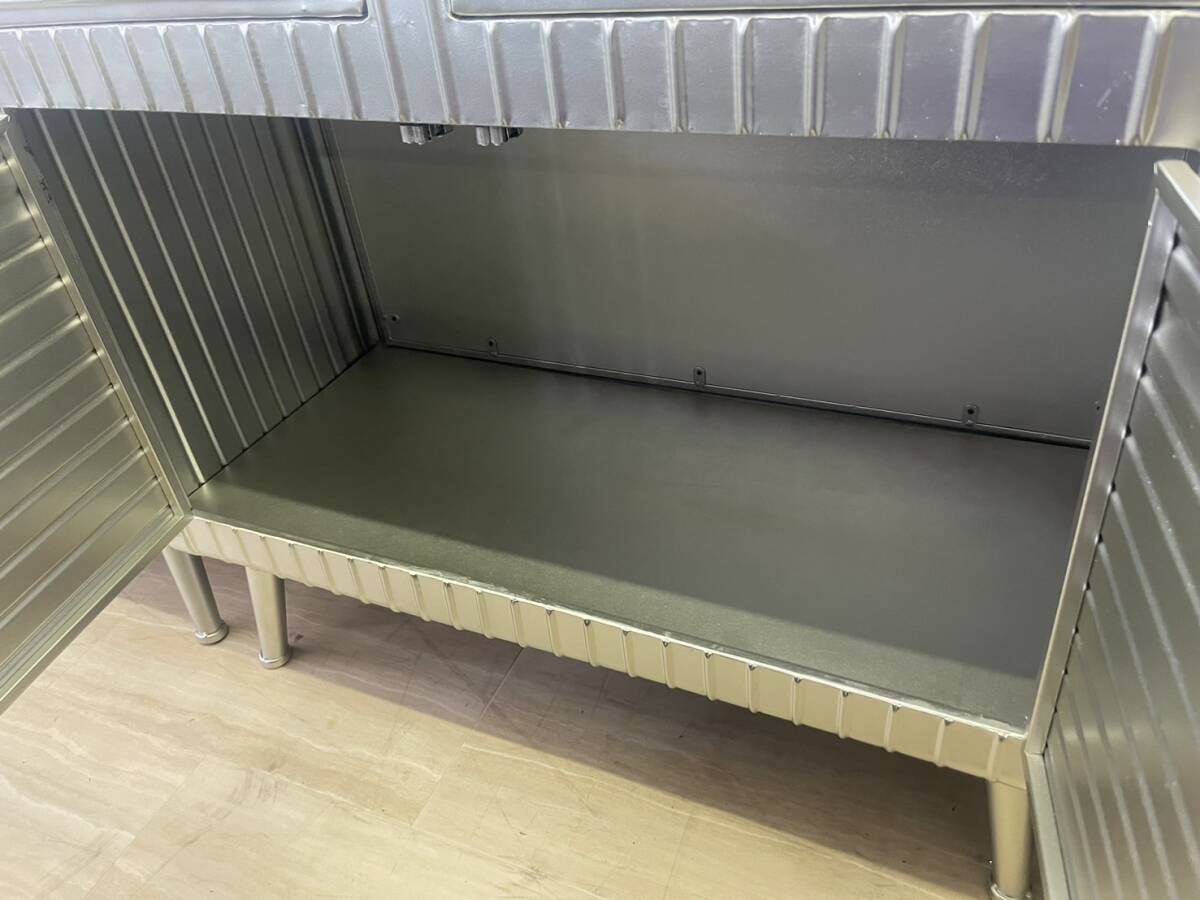 男前インテリア キャビネット ワイド インダストリアル 収納 引出し スチール シルバー チェスト 扉付き 棚 ラック サイドボード