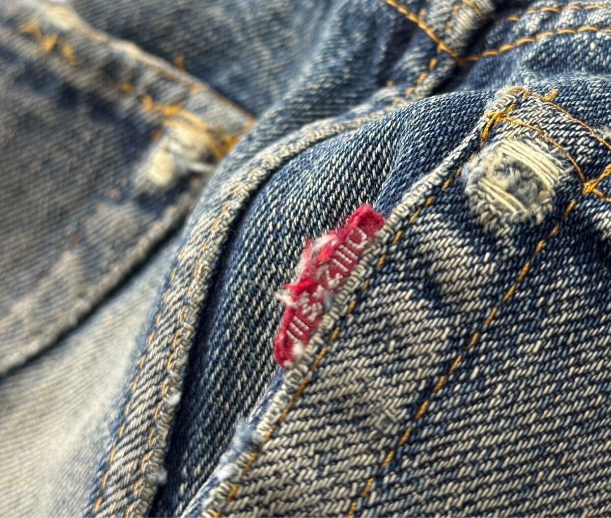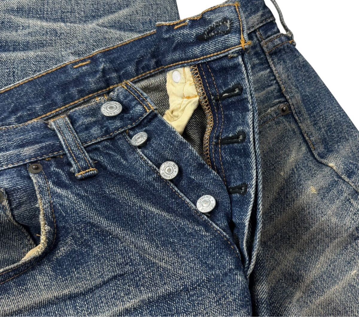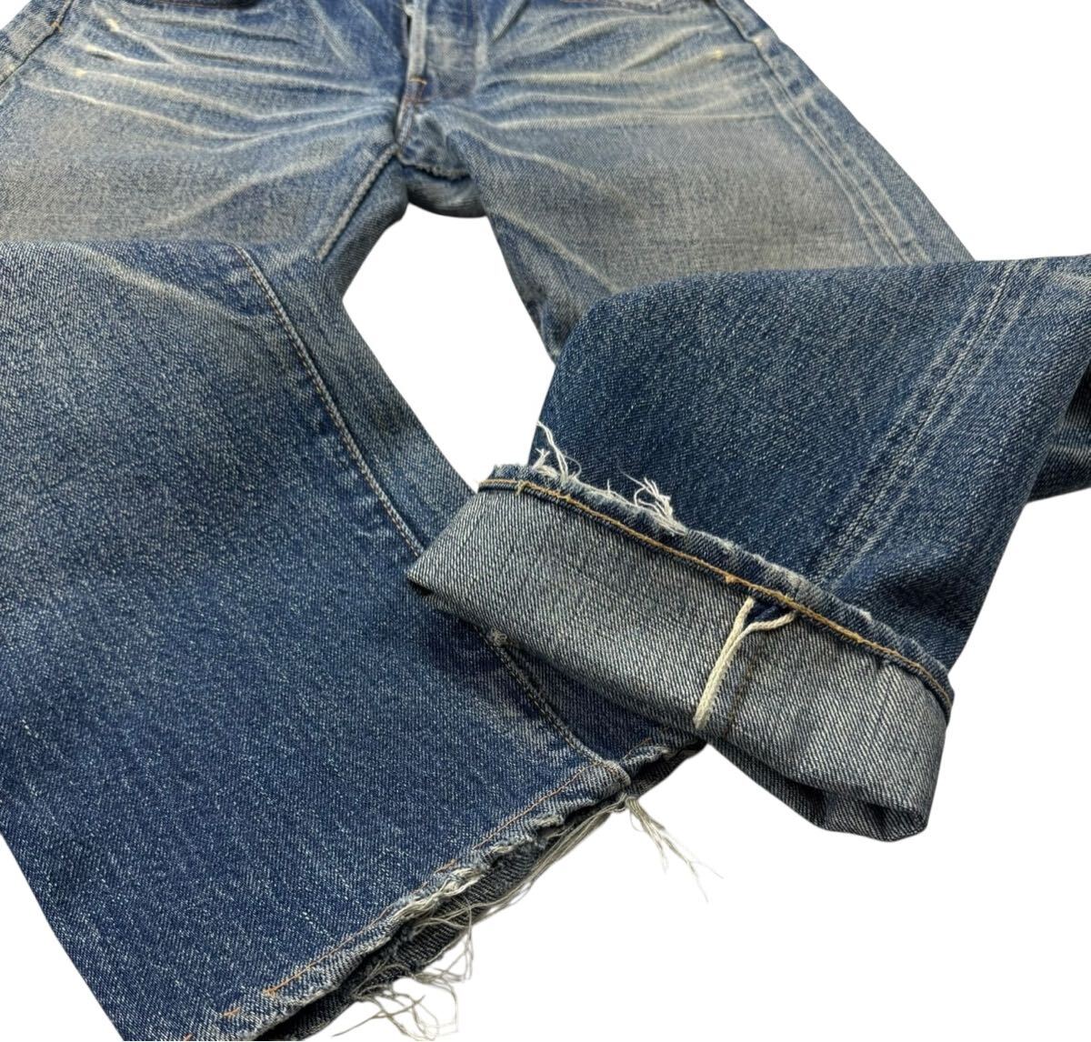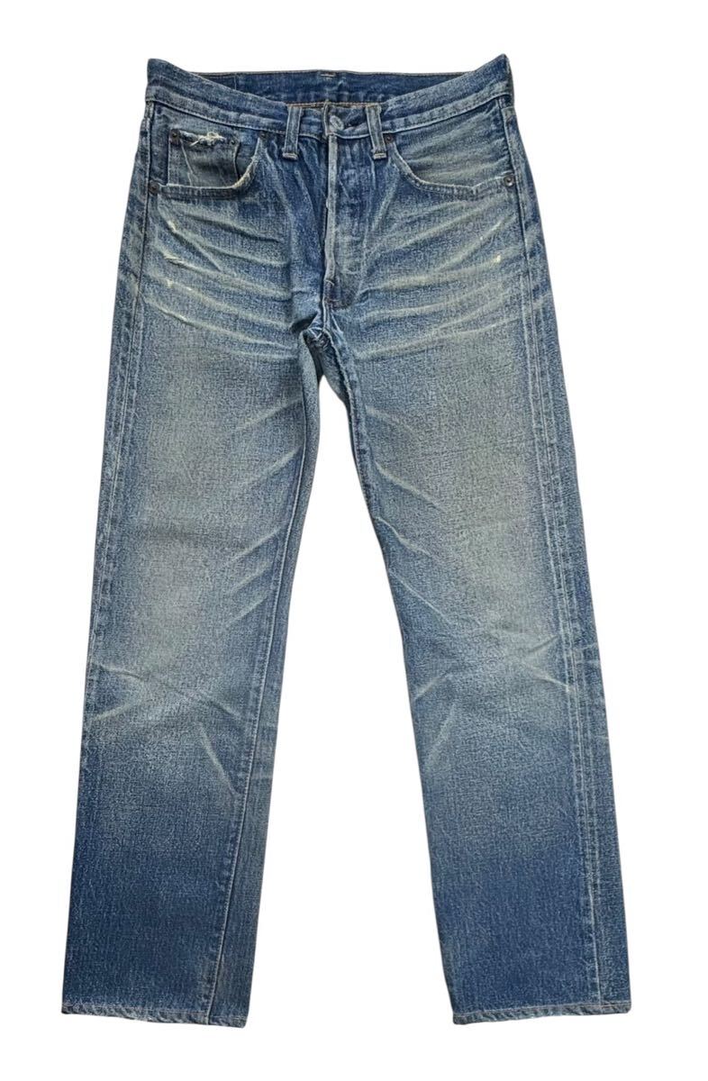 多少使用感ありますがかなり綺麗な色落ちです。股下に若干のリペアがあります。
