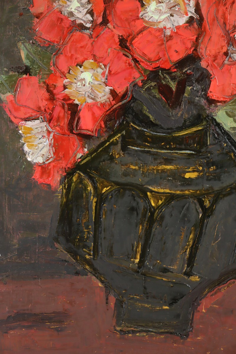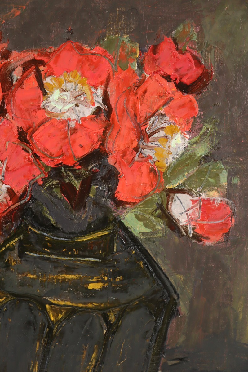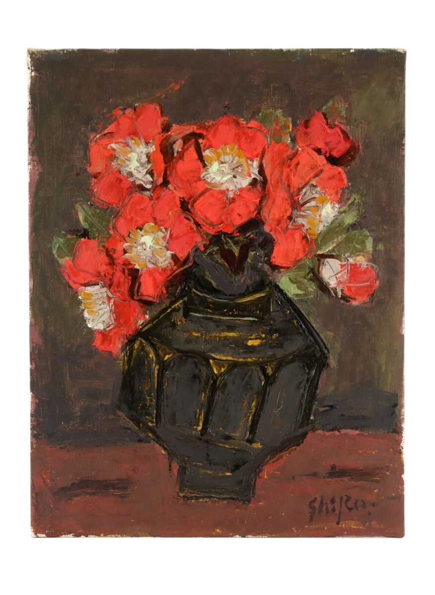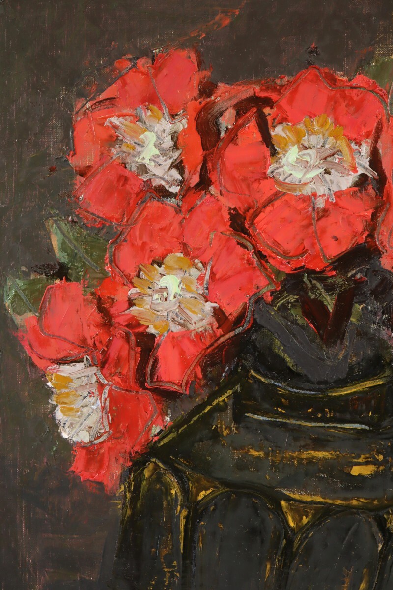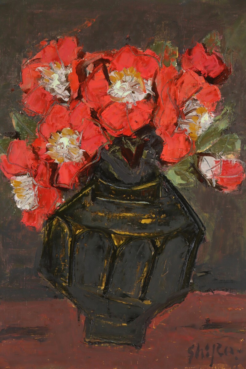 真作 花野四郎 1983年油彩「椿」画寸 P10 ギャラリー越取扱い 厚塗りで立体感あり力強い筆致と鮮やかな色彩で肥後椿の美しさを表現 11368