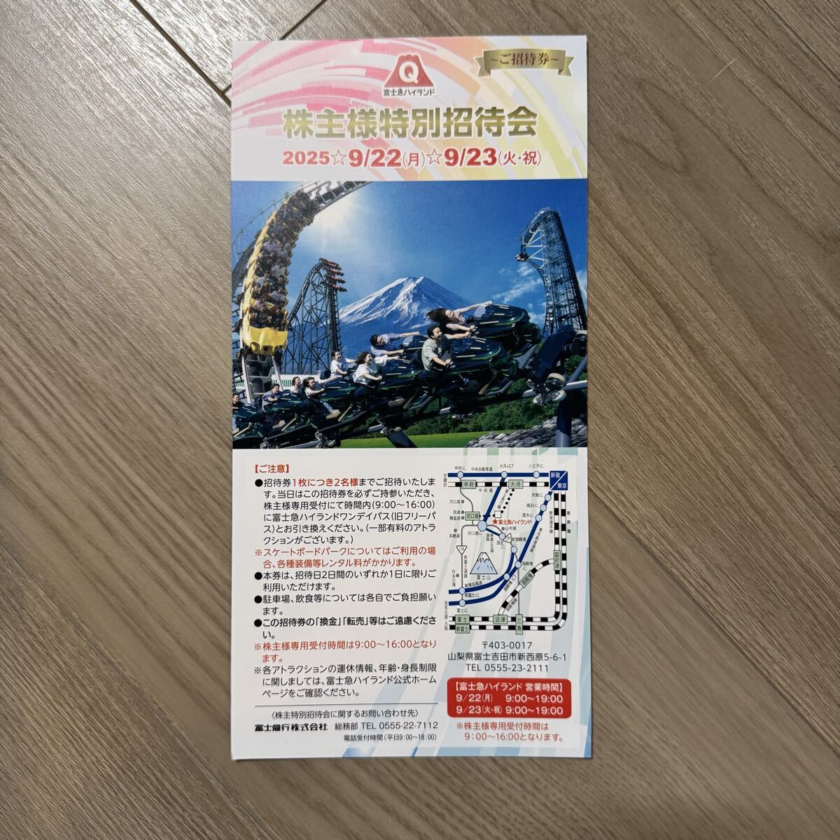 『富士急ハイランド 株主様特別内覧会ご招待券×1枚(富士急ハイランド フリーパス 1枚につき2名様まで) 』