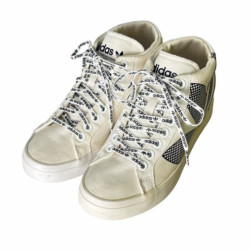 アディダスオリジナルス adidas originals COURTVANTAGE HEEL LOGO ハイカット スニーカー キャンバス ロゴ 23.5cm 白 ホワイト 黒 ブラック FU6820 レディース