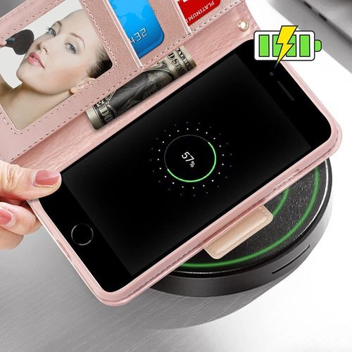 【スタンド機能&Qi充電対応】スマホ横向きでのスタンド機能付きで、動画鑑賞、読書などに最適! ワイヤレスの充電も干渉せず問題なく使用できます。