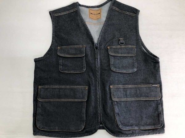 サルベッキオ SALVECCHIO IN ITALY メンズ ジップアップ デニム 多機能 レジャー ベスト 綿98% ポリウレタン2% ストレッチ LL 紺