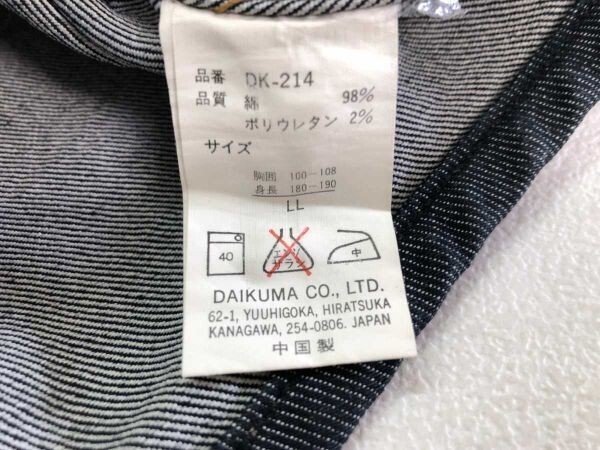 サイズはLLで着丈62cm、身幅58cm、袖丈0cm です。