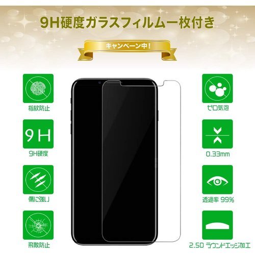 【ガラスフィルム付き】9H硬度の保護ガラスフィルムが一枚付属します