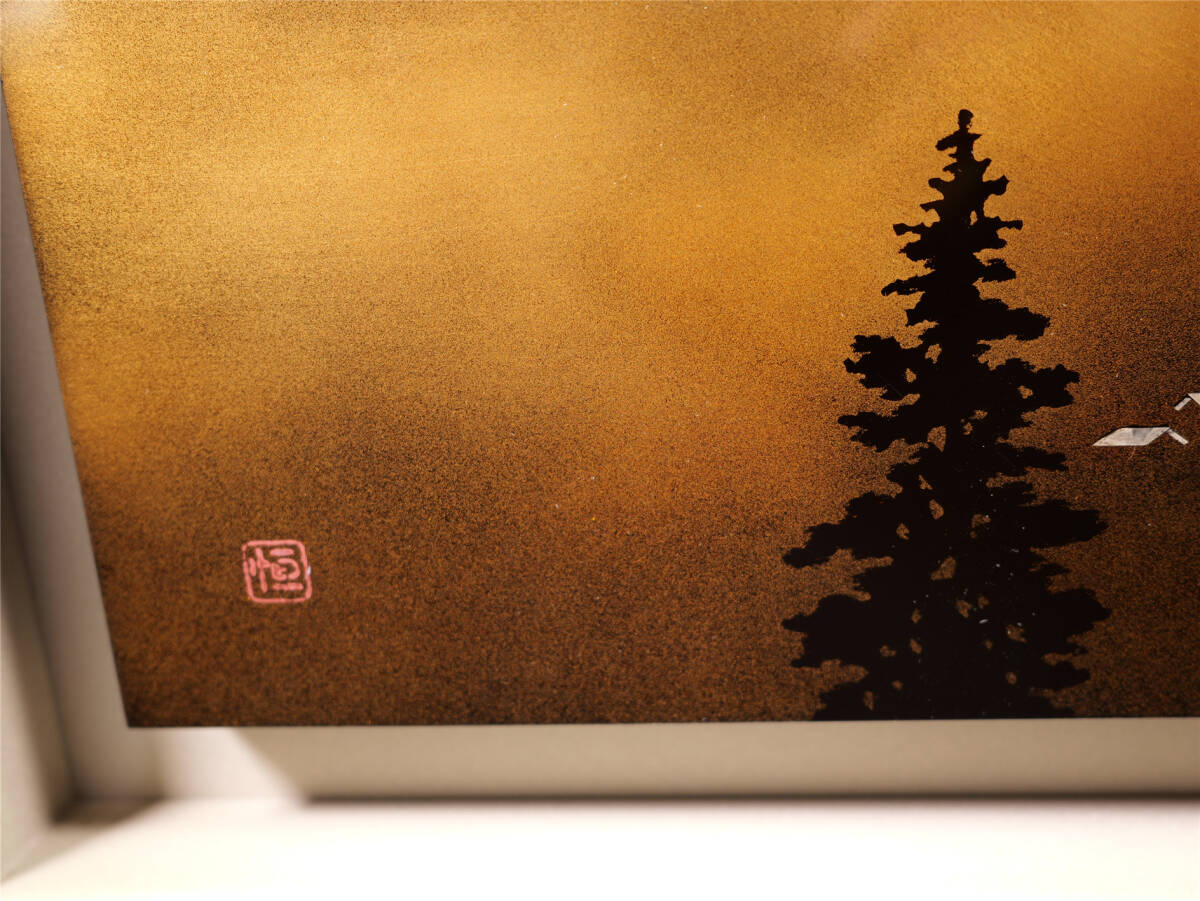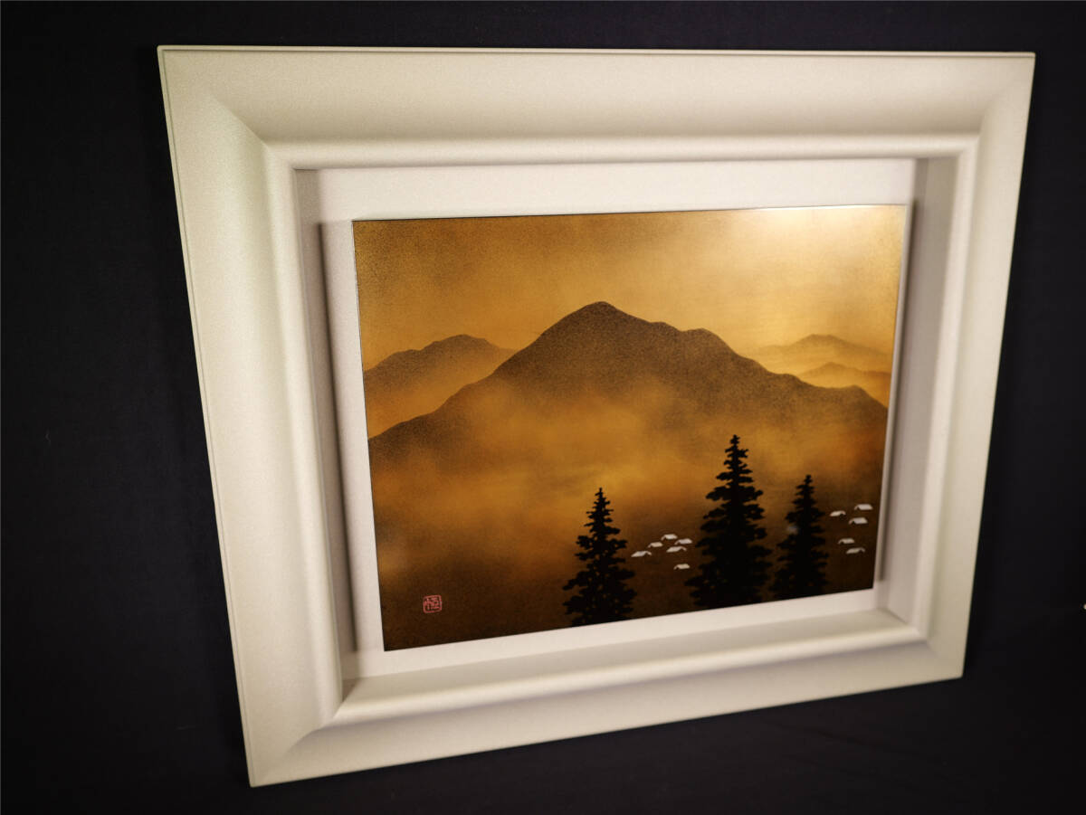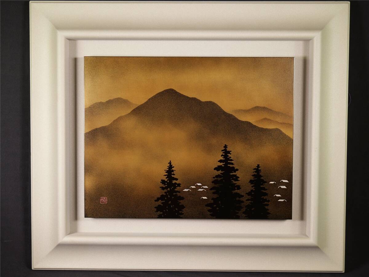 並木恒延「霧の山」共シール 漆絵 高級漆工芸 本物保証 額装 漆芸作家 |
