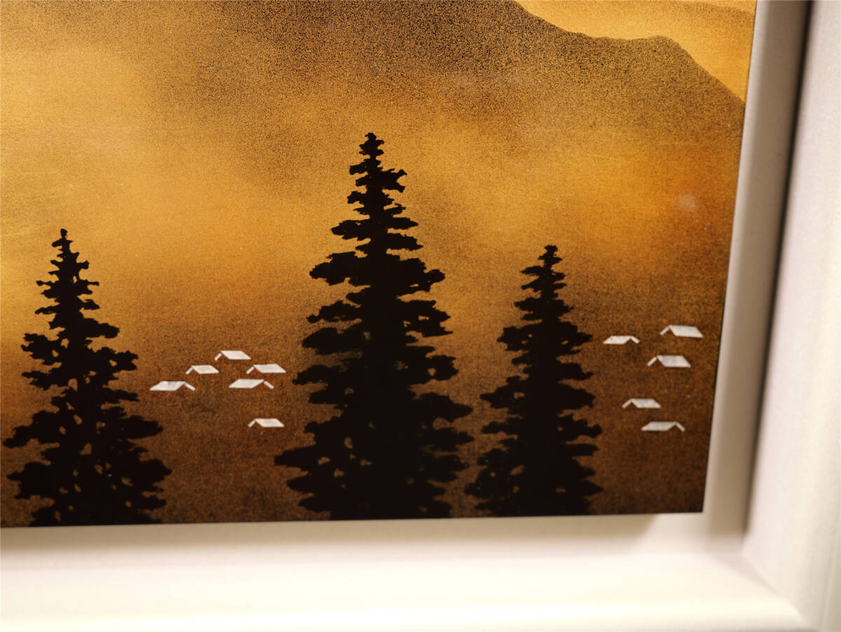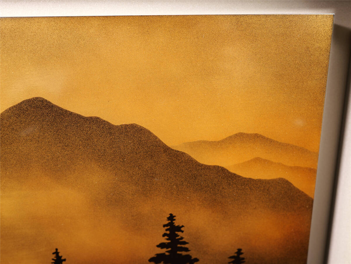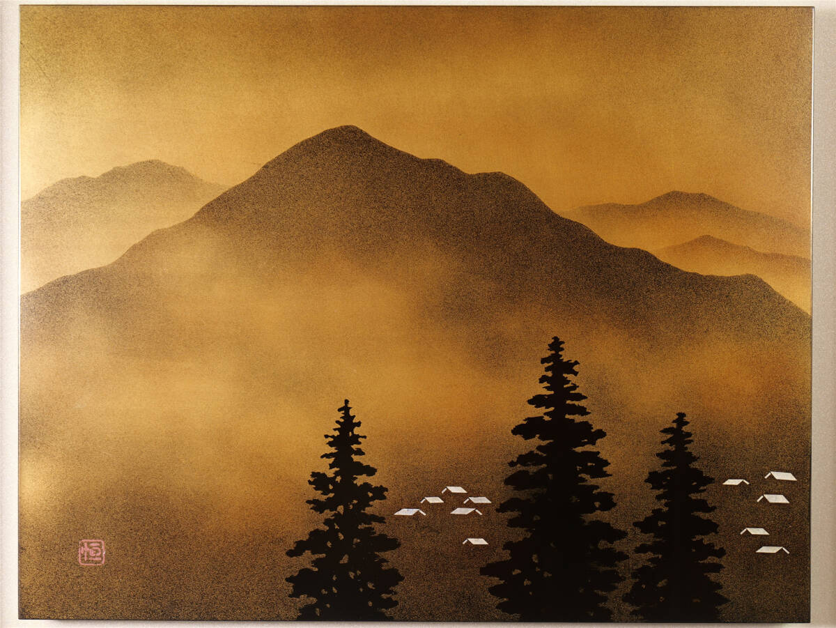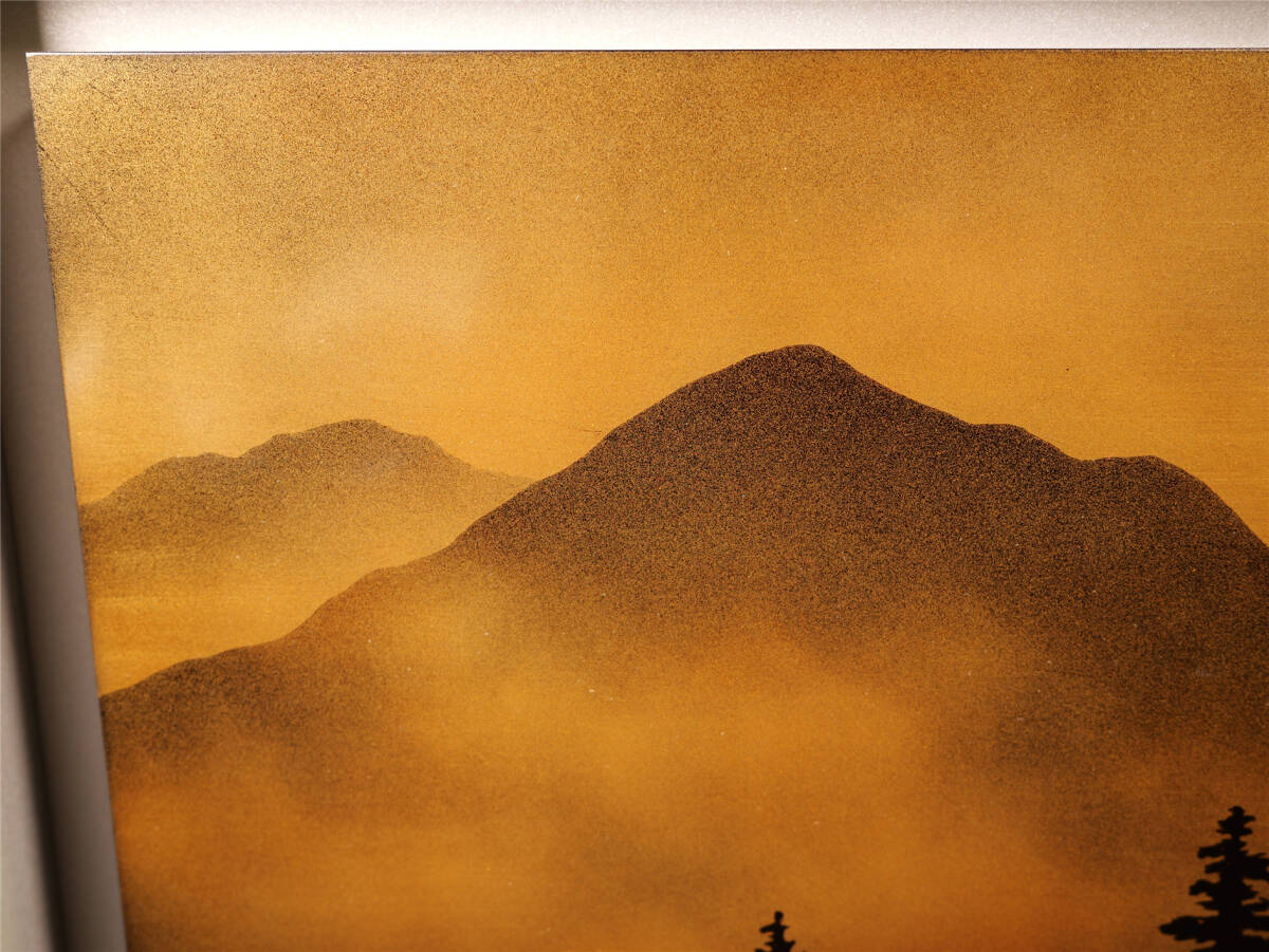 並木恒延「霧の山」共シール 漆絵 高級漆工芸 本物保証 額装 漆芸作家 |