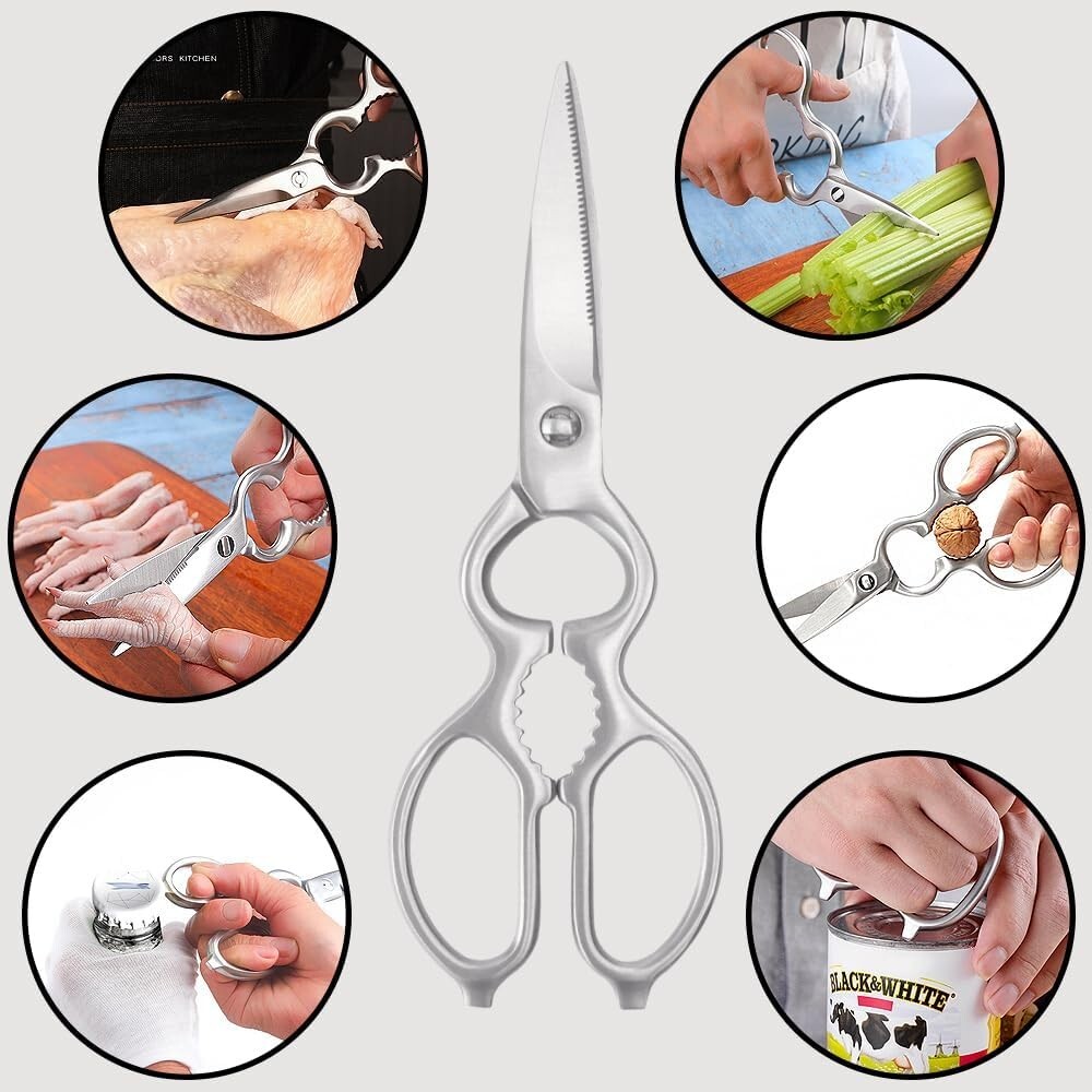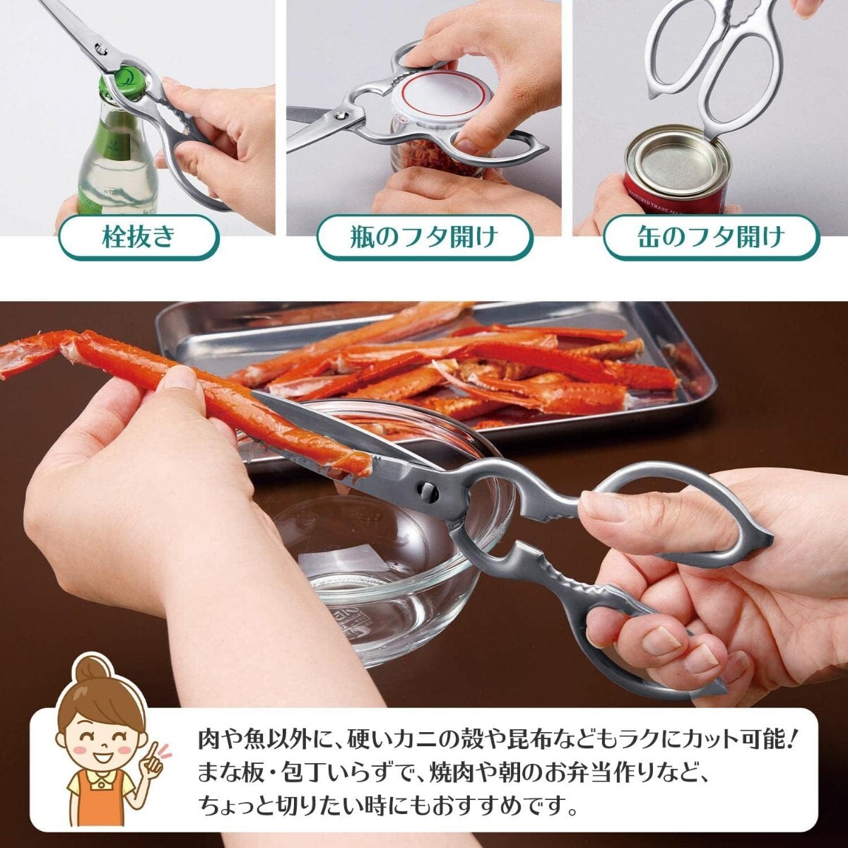 【多機能】缶切り、栓抜き、くるみ割り器。鶏肉、バーベキュー、チキン、エビ、魚、ソーセージ、野菜、ピザ、ハーブなど多目的に使用できます。