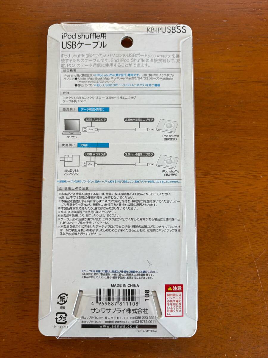 【送料無料】iPod Shuffle 接続ケーブル USBケーブル 2nd Shuffle用 SANWA SUPPLY 0.15m KB-IPUSBSS