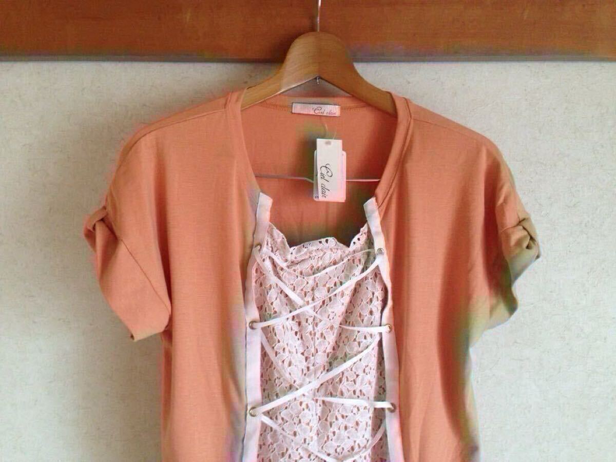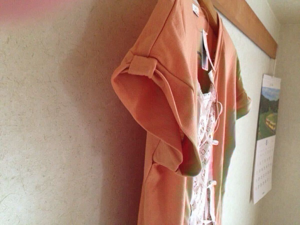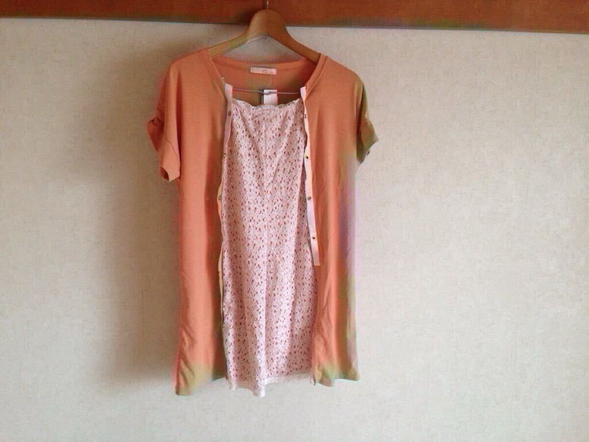 ・色柄 : 柿色 前身ごろに首から裾までレ-ス仕様でリボン付き リボンは外せます。