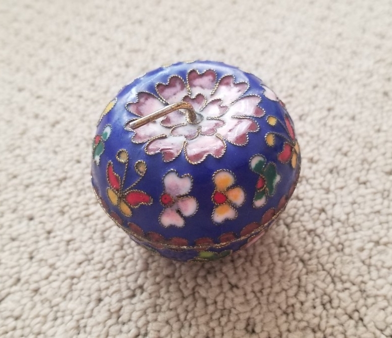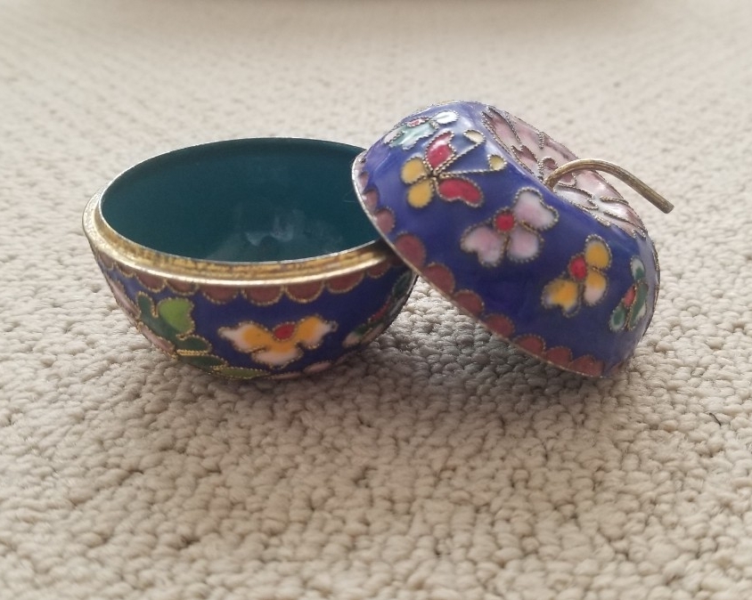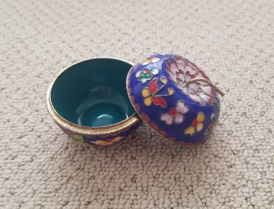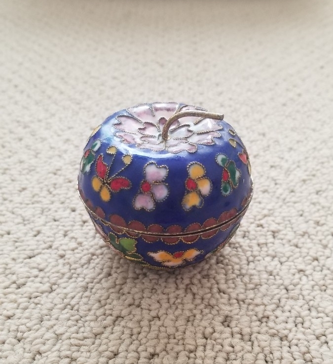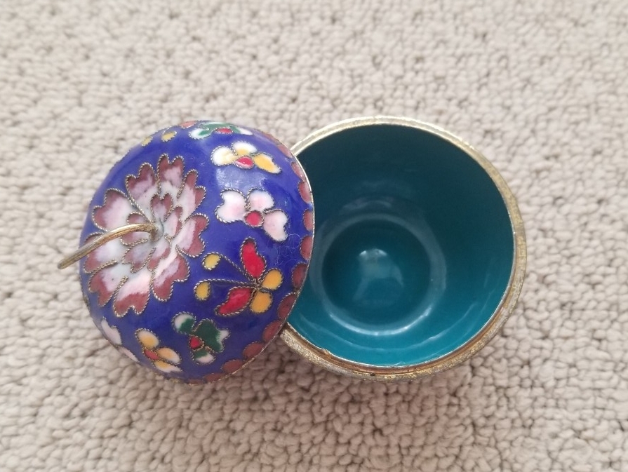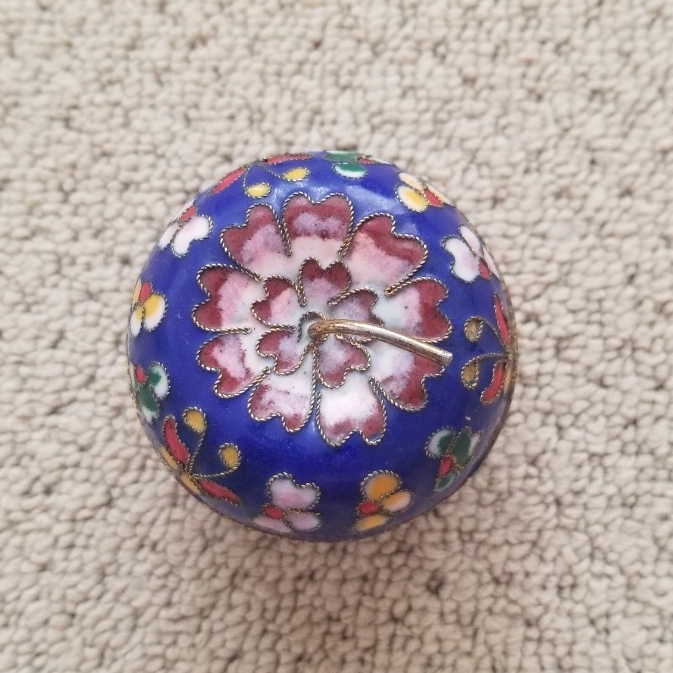 濃いロイヤルブルーのような色をベースにカラフルな花模様が映えてインテリアとして置いておくだけで素敵です。