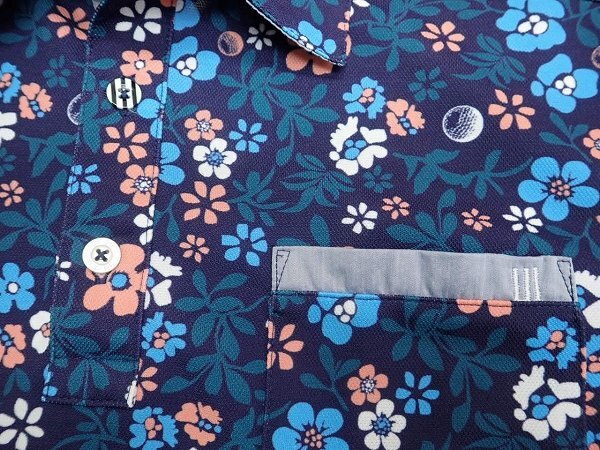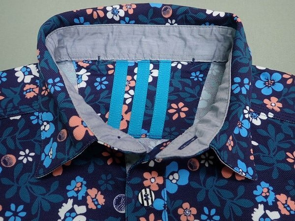adidas アディダスのシャツです。ゴルフボール&フラワー総柄デザインです。素敵にお使い頂けると思います。気になる方は是非ご検討下さい。 | |
