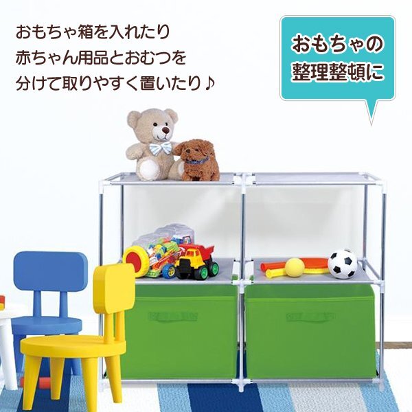 収納ボックスを用意すれば、お子様のおもちゃ箱を入れたり、赤ちゃん用品とおむつや紙パンツを分けて取りやすく置いたり♪