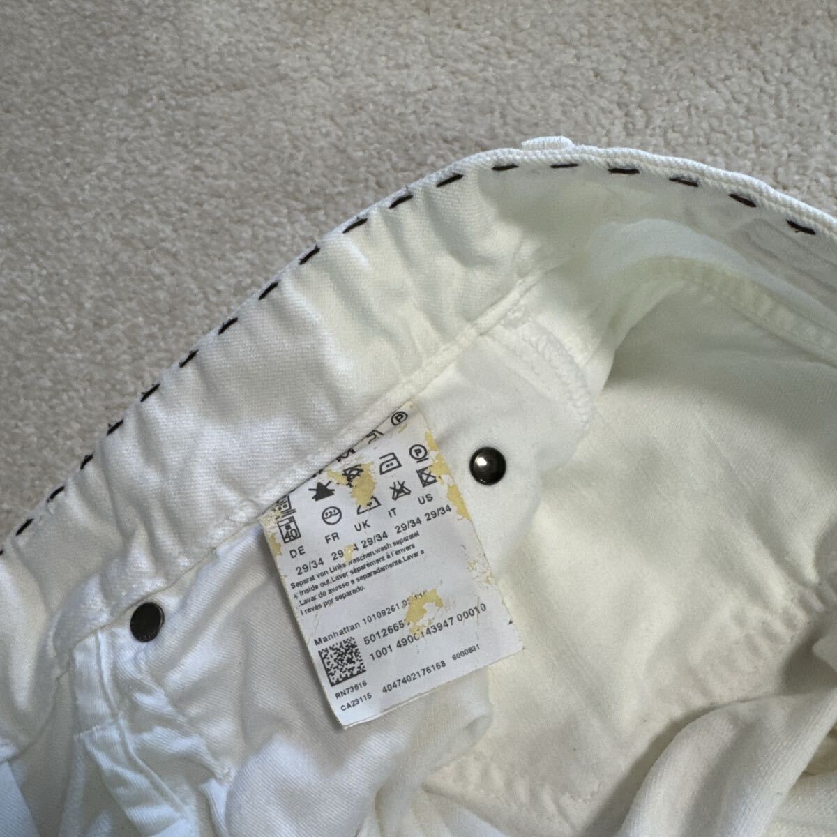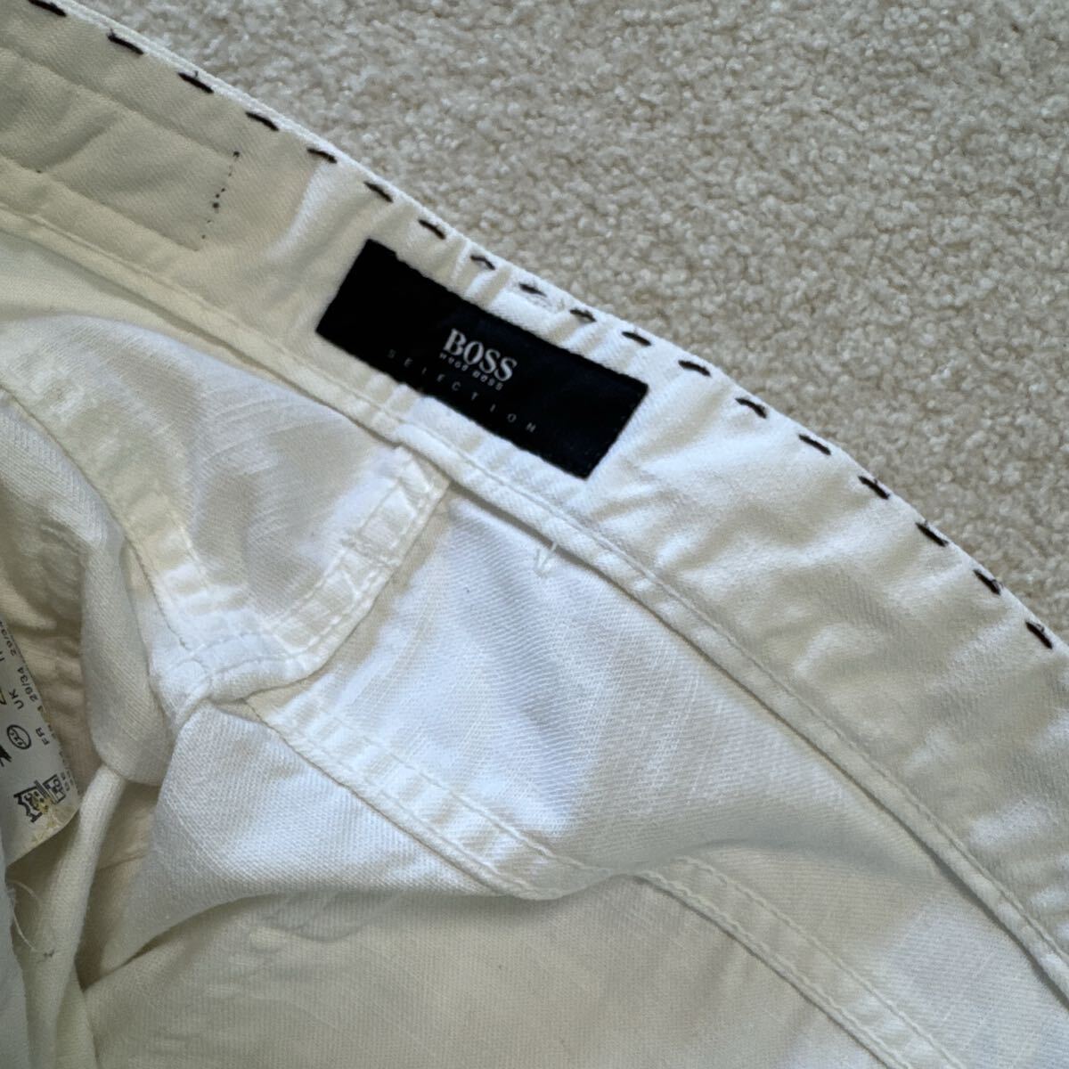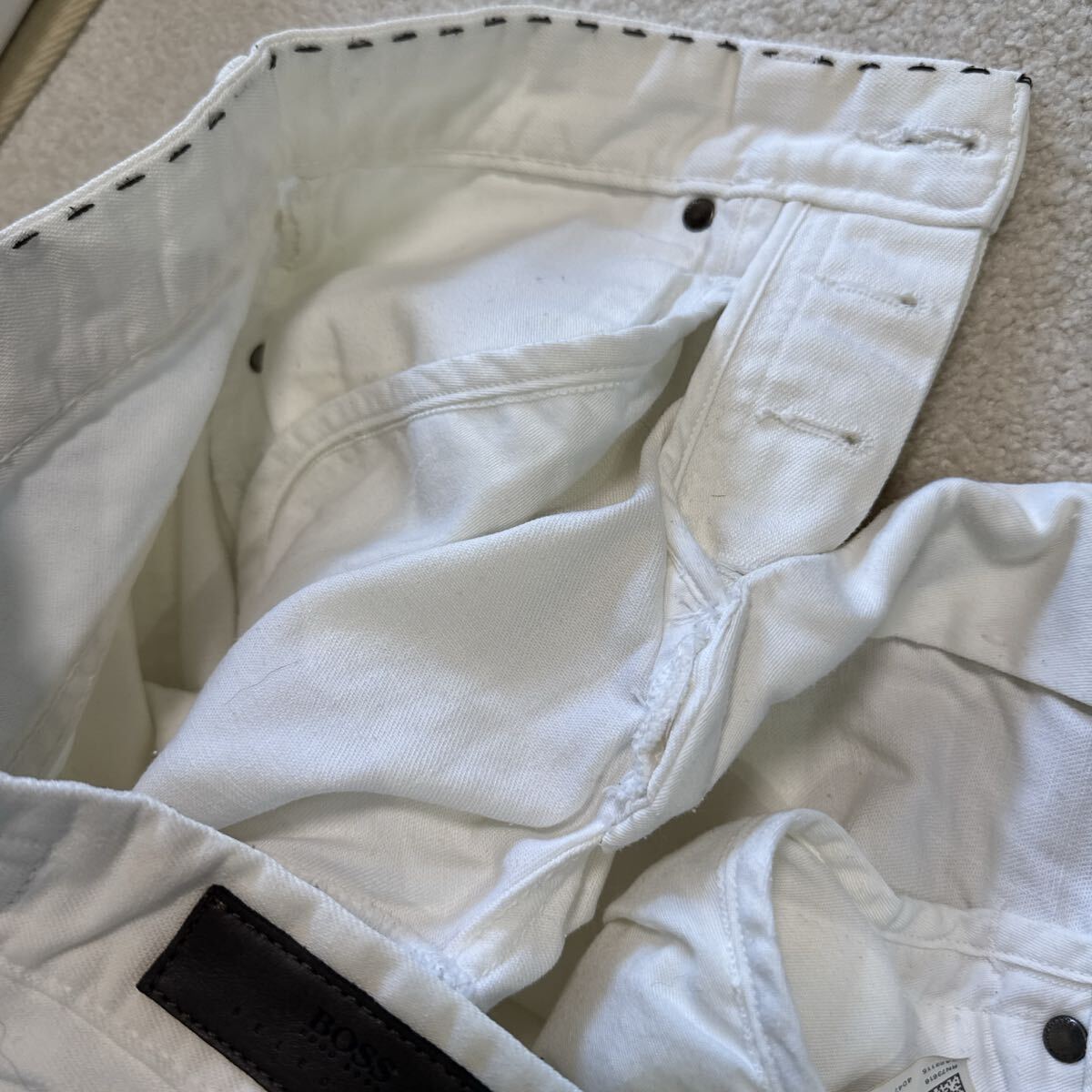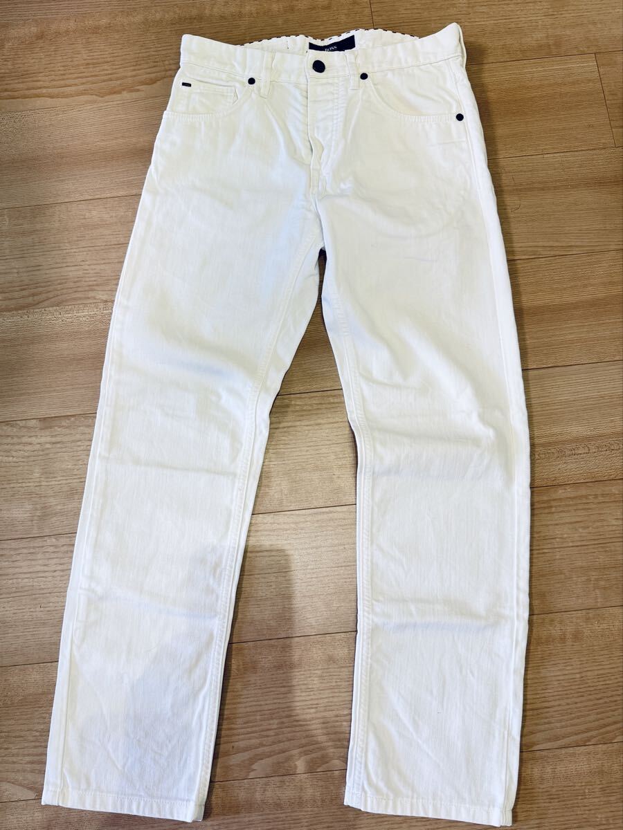 ホワイトデニムのストレートパンツ、BOSS SELECTIONモデル。