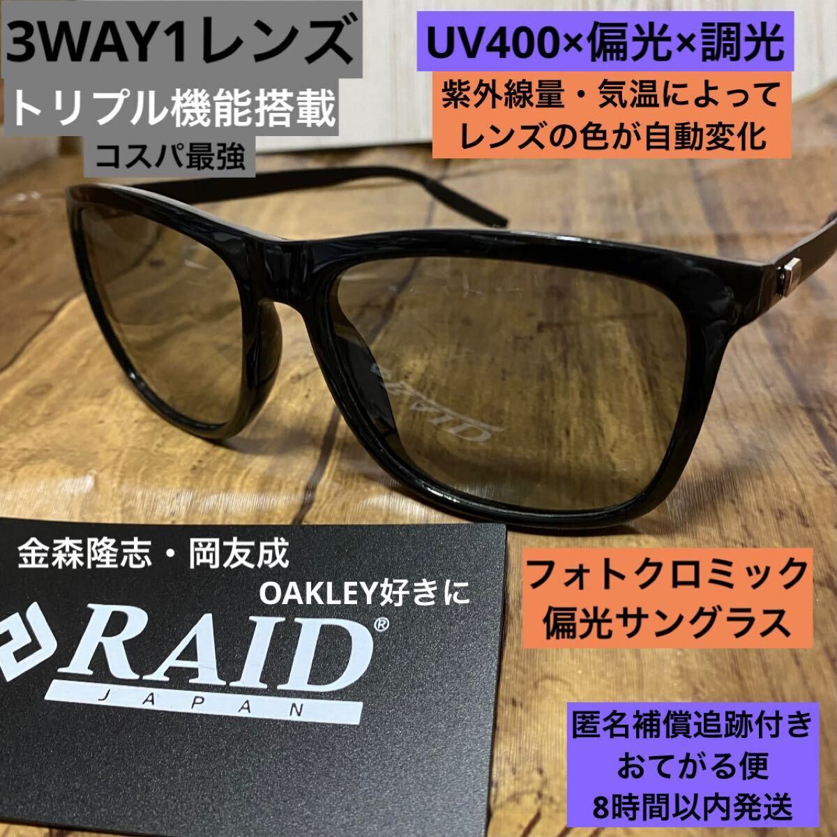 UV400フォトクロミック機能付き偏光サングラスです。