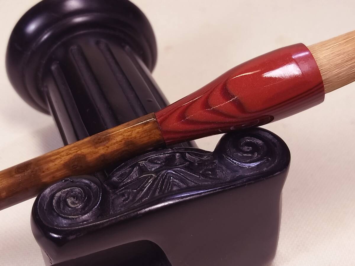 ♪即决【壽】天然最高級野生珍稀海南黄花梨(紫油梨老料)・狼毫手工芸書道毛筆『純狼北尾』 (名家作品) 収蔵未使用品 No10