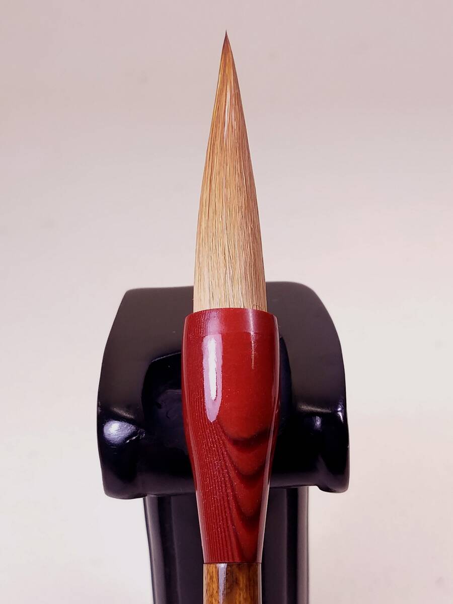 ●商品サイズ: 筆竿外径×鋒長×全長寸法(筆掛紐を含まず): 10mm×57mm×307mm、筆託外径16.6mm(全て最大値)、重さ約20グラムです。(25.04.27)
