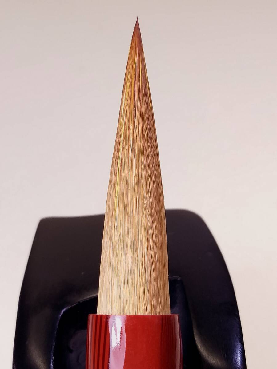 本品の筆峰部分に使用されているの材料は、中国チベット青藏高原に生息の黄鼠狼(イタチ)の尖針毫です!黄鼠狼(イタチ)の尖針毫は、靭度、強度、弾力性において非常に優れています。価格、珍稀程度も、非常に高いです!筆の“命毛、腰毛、喉毛”部分で、この動物の体毛の異なる部分の全てが使用されております。現在、この動物の材料は、大変手に入れにくいです!