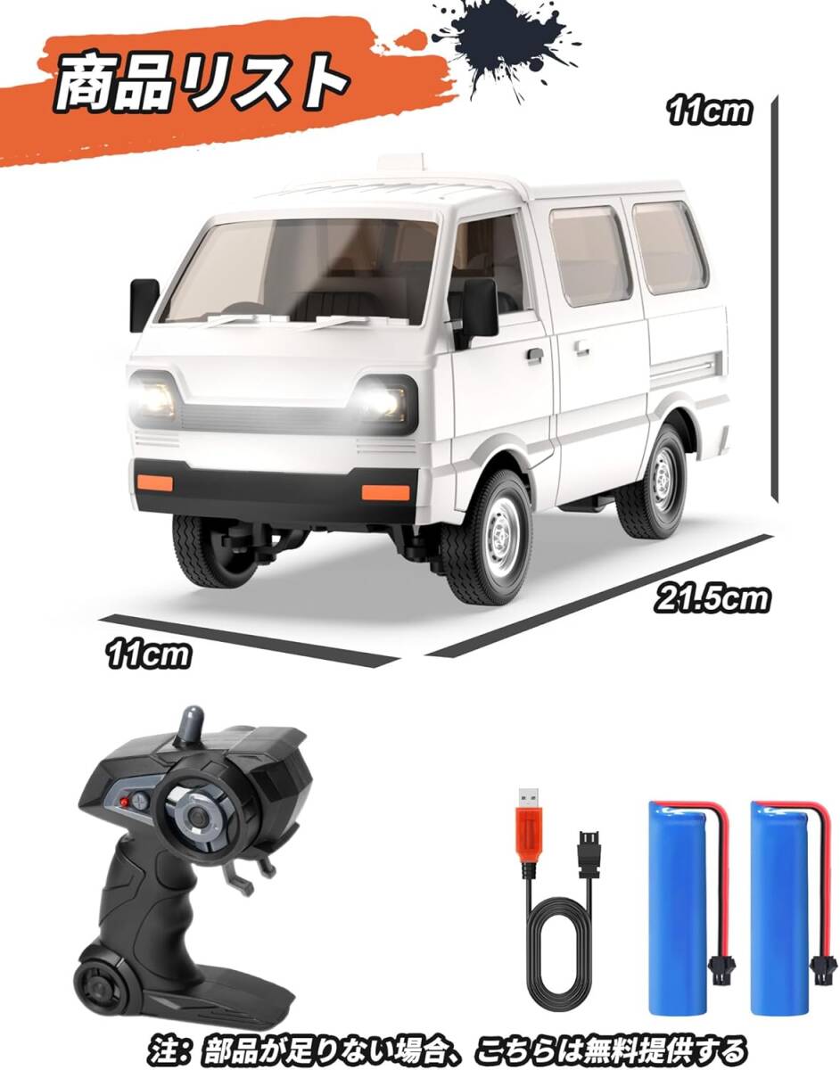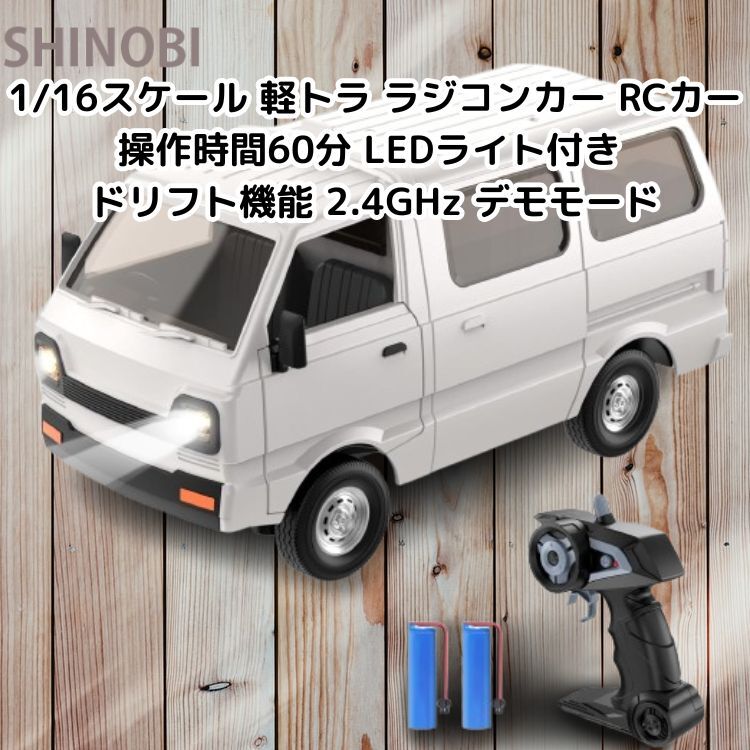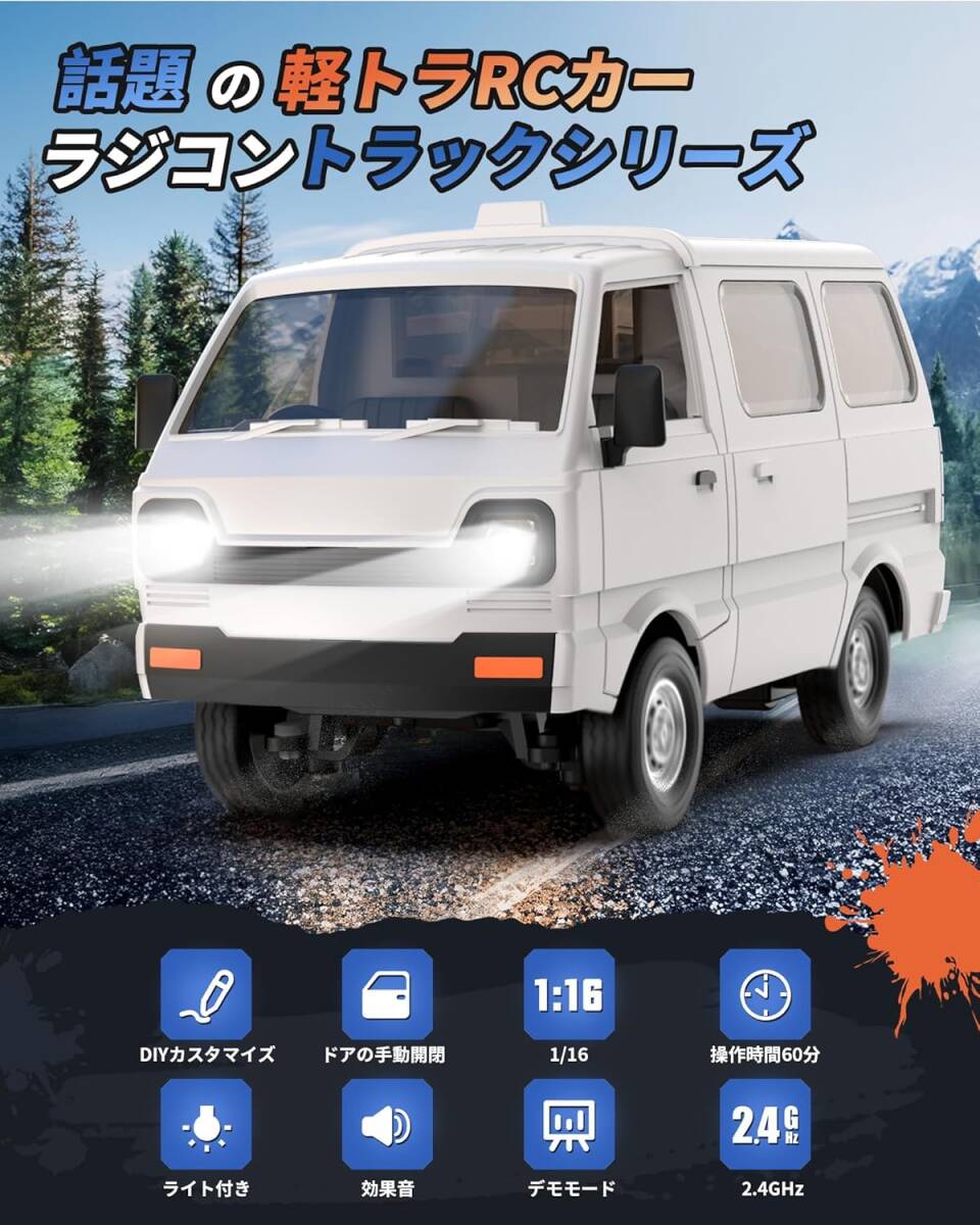 1/16スケール 軽トラ ラジコンカー RCカー 操作時間60分 LEDライト付き 効果音付き ドリフト機能 2.4GHz デモモード DIY可能