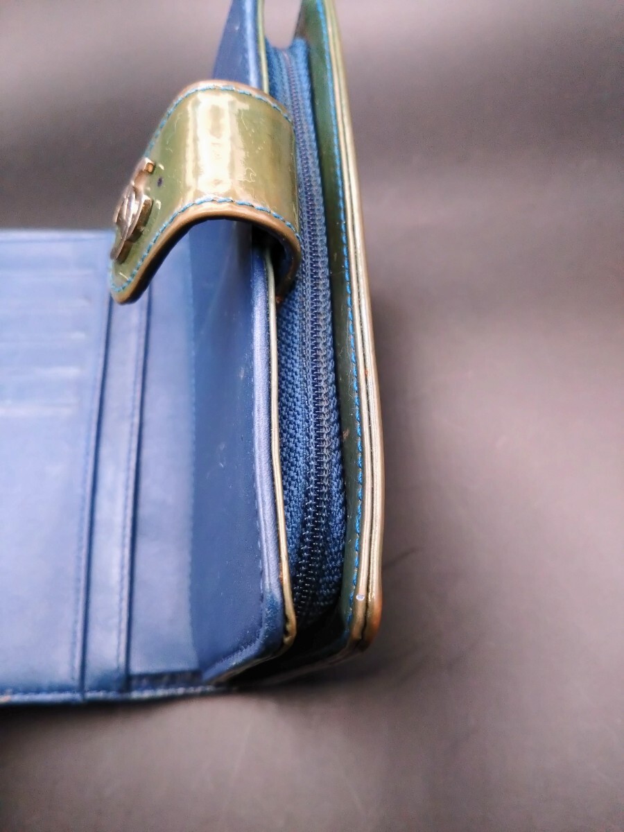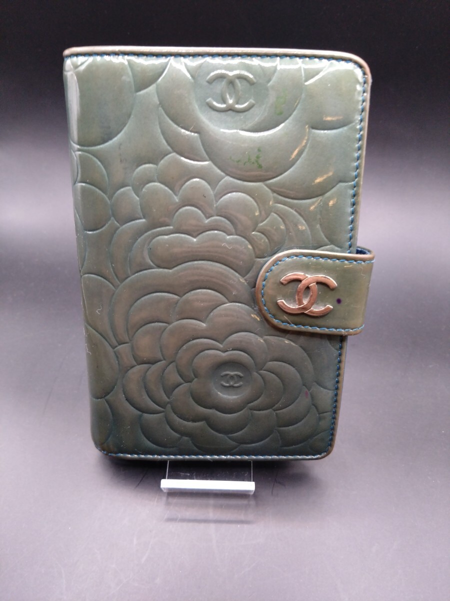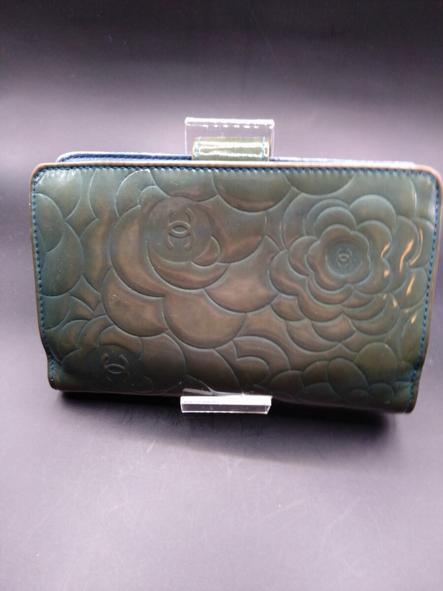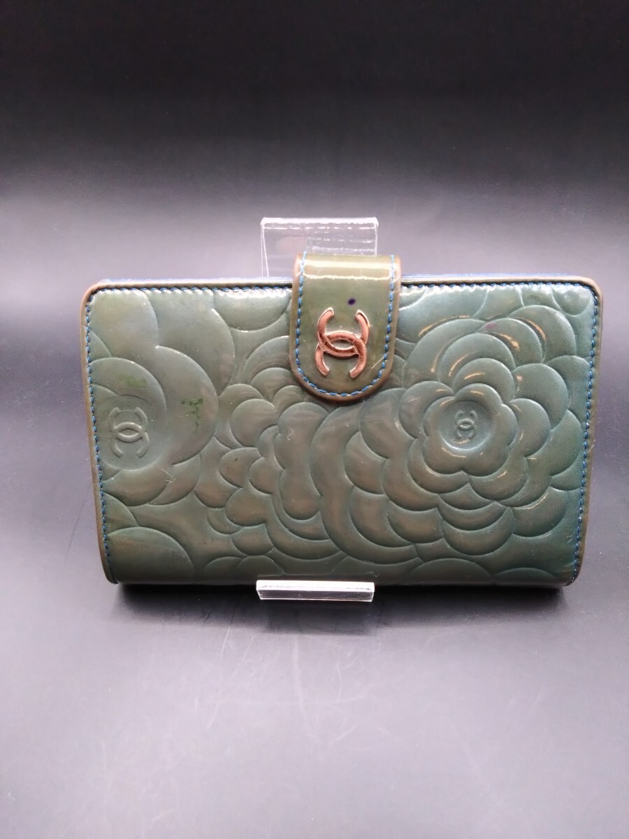 ☆激レア・希少☆ / CHANEL シャネル / カメリア パテント コンパクト折り財布 / グリーン×ブルー / パテントレザー+本革 / ココマーク シルバー金具 フラワーエンボス / イタリア製