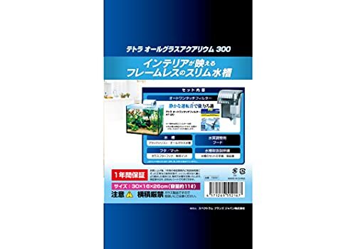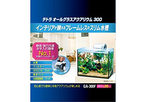 「テトラ (Tetra) ガラス 水槽 オールグラスアクアリウム GA-300F 水槽 アクアリウム 熱帯魚 メダカ 金魚」▼4571269552167▼(商品説明)スリム水槽・透明 300 73051・・Size:300・初心者でもお洒落に簡単に観賞魚の飼育が始められる・お手入れ簡単、静かな運転音のワンタッチフィルター付・インテリアに映える美しいフレームレスのオールガラスのスリム水槽・セット内容は、水槽、専用ガラスフタ、オートワンタッチフィルター・水槽サイズ:30×16×26cm(容量 約11L)説明 商品紹介 インテリアに映える美しいフレームレスのオールガラスのスリム水槽。お手入れ簡単、静かな運転音のワンタッチフィルター付。初心者でもお洒落に簡単に観賞魚の飼育が始められます。水槽サイズ:30×16×26cm(容量 約11L)。(セット内容)水槽、専用ガラスフタ、オートワンタッチフィルター 使用上の注意 ガラス製です。水槽の角や、欠けた部分、破片などで負傷しないようにお取り扱い下さい。水や砂利を入れたままで水槽を移動しないでください。お湯(40℃以上)は注がないで下さい。 ご注意(免責)>必ずお読みください 原材料の原産国が変更になる場合がありますのでパッケージにてご確認ください。商品パッケージは予告なく変更になる場合もございます。予めご了承ください。