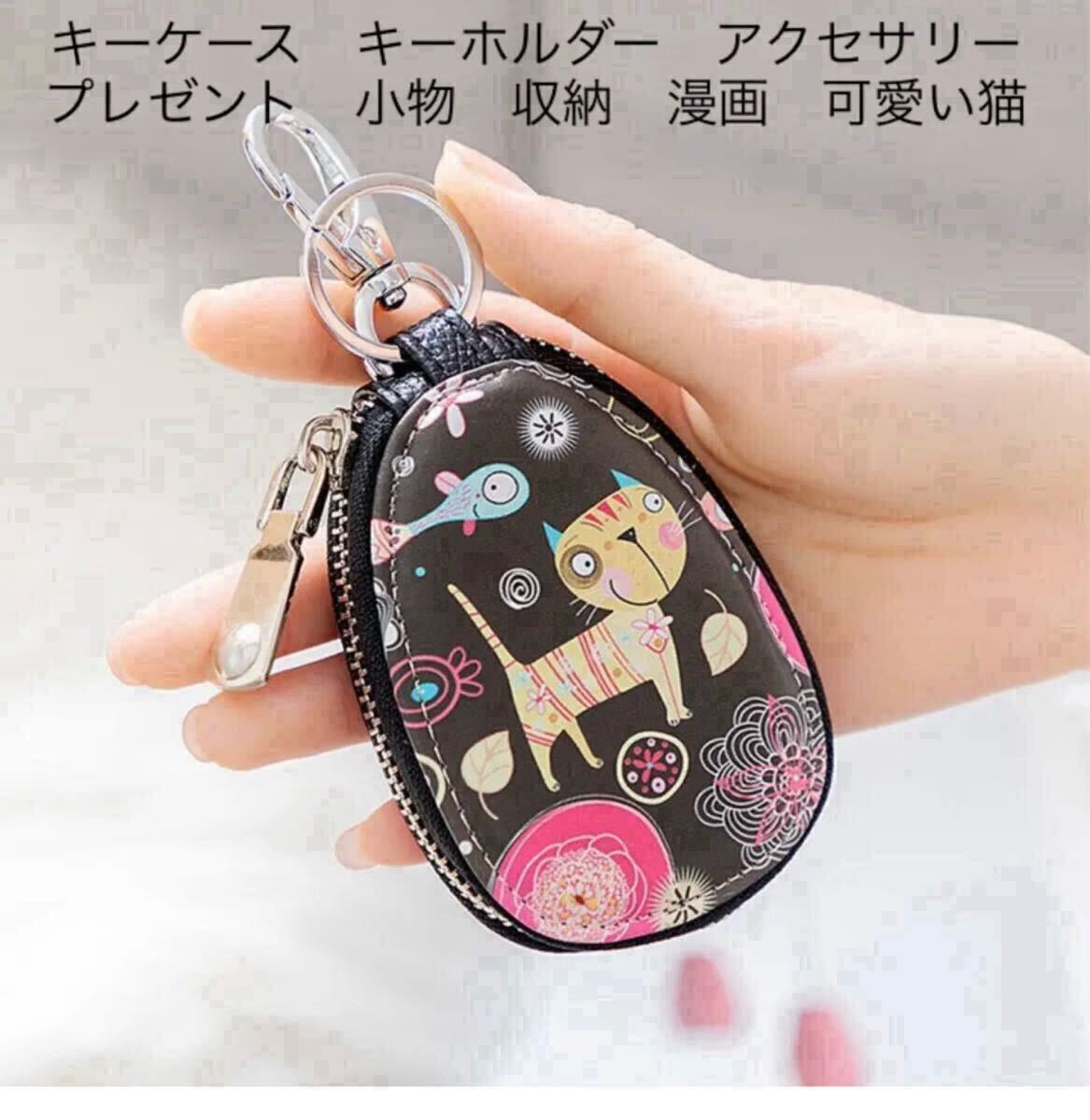 キーケース 可愛い 漫画 アクセサリー 誕生日 贈りもの キーケース キーホルダーアクセサリー プレゼント 小物 収納 少女 猫 建物 コンパクト スマート