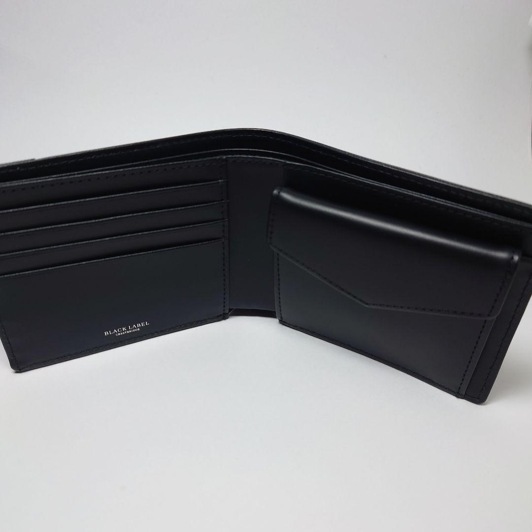 ・ブラックレーベルクレストブリッジの二つ折り財布です。