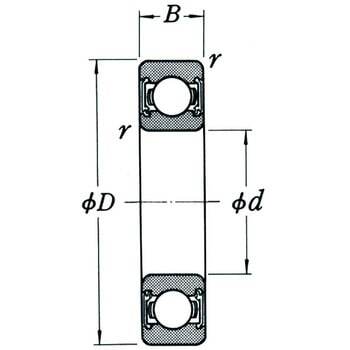単列深溝玉軸受は、転がり軸受の中で最も代表的な形式であり、その用途は広い。内輪・外輪に設けられた軌道の溝は、転動する玉の半径より、わずかに大きい半径の円弧の横断面をなしている。