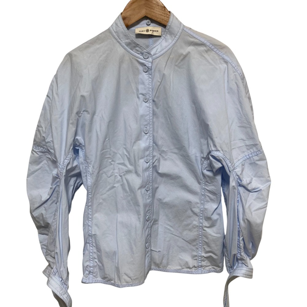 商品名:TORYBURCH トリーバーチ ビックカラーリボンブラウス 2WAY ロングスリーブ シャツ サイズ2 ライトブルー