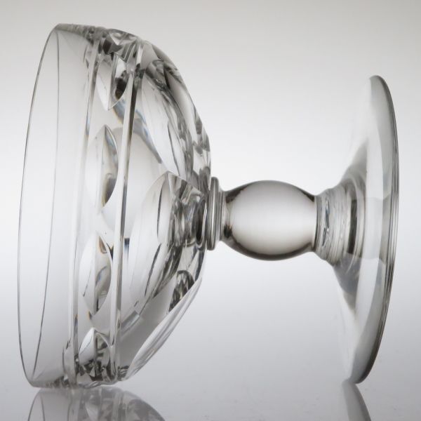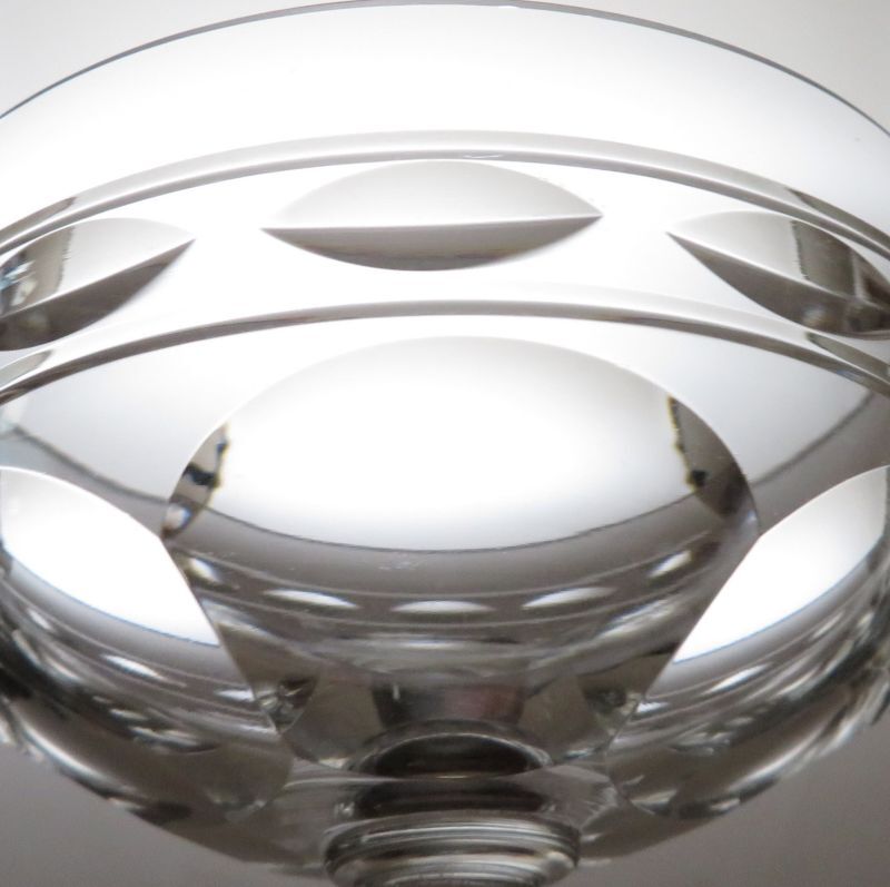 6面の大胆なフラットカットがタリランドに似ており、さらにボウル上部を一周する2本の長いカット、その間に葉のような形状のカットが入っているため、カット数でいうとカンスグレのほうが職人の手がより多く入っている良いグラスと言えるでしょう。