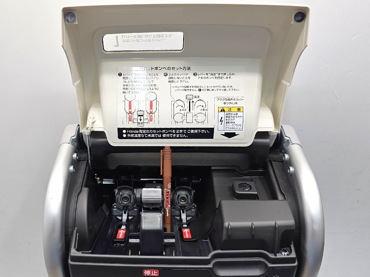 | 商品説明 | ※スマートフォンの方は「商品説明を読む」を タップすると追加画像が表示されます。 メーカー: HONDA / ホンダ 型番: 正弦波インバーター搭載発電機 エネポ EU9iGB 付属品:写真に写っている物で全てです。 【仕様・特長】 ■燃料は手軽なカセットボンベ。 燃料は、扱いやすく入手しやすいカセットコンロ用のカセットボンベ。 ガソリンと比べて劣化に強く長期保管にも適しています。 ■5℃から使える優れた低温始動性。 低温下で気化しにくくなるカセットガスでも、 Honda 独自の液層から燃料を供給する機構により広い温度範囲での使用が可能です。 ※使用温度範囲 5℃~40℃ ■離れた場所へもラクラク移動。 保管場所など、離れた場所からの移動に心強い折りたたみ式のハンドルと大型車輪を装備。 ■場所をとらずにすっきり収納。 凹凸の少ないスクエア形状。縦型デザインだから狭い場所にも収まりよく収納できます。 ■いざという時は、「並列運転機能」で出力アップ。 別売りの並列運転コードで2台の発電機をつなげば出力が2倍に。 エネポ同士だけではなく、ガソリンタイプのEU9iとも接続可能です。 ■エコスロットルで最長2.2hの低燃費。 接続機器の消費電力に合わせてエンジンの回転数を最適に制御することで、運転時間を向上させます。 ※1/4負荷時 連続運転時間 最長2.2h ■製品仕様 サイズ:365×262×524mm 乾燥質量:19.5kg(50/60Hz) 定格出力:900VA 連続運転可能時間:約2.2~1.1H 燃料容量:500gカセットボンベ2本 ※カセットボンベは別売りです。 ■ご使用上のご注意 屋内では絶対に使用しないでください。 屋外でも換気の悪い場所では絶対に使用しないでください。 発電機の使用中に出る排気ガスには有害な一酸化炭素が多く含まれており、一酸化炭素中毒を引き起こす恐れがあるため大変危険です。 詳しくはメーカー公式サイトをご覧ください。 管理用: H |
