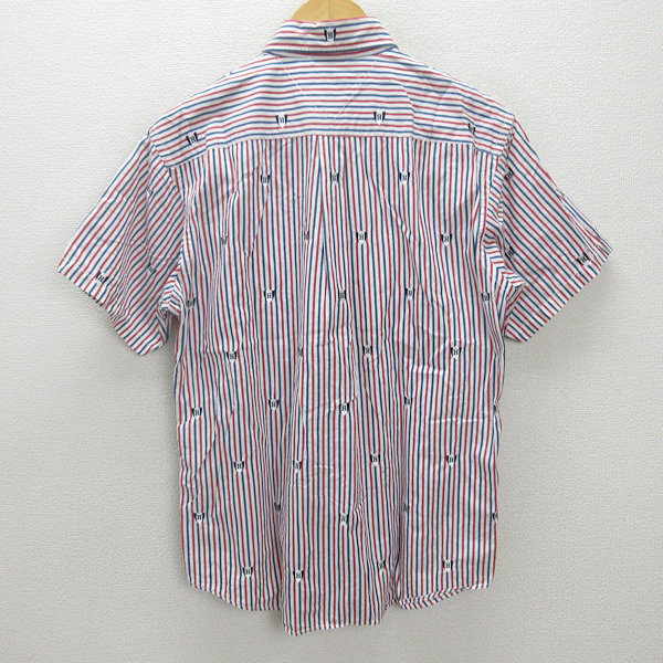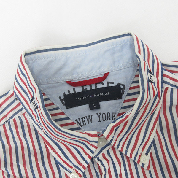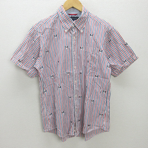 G■トミーヒルフィガー/TOMMYHILFIGER 半袖BDシャツ/ストライプ柄【L】赤紺/men's/157【中古】■
