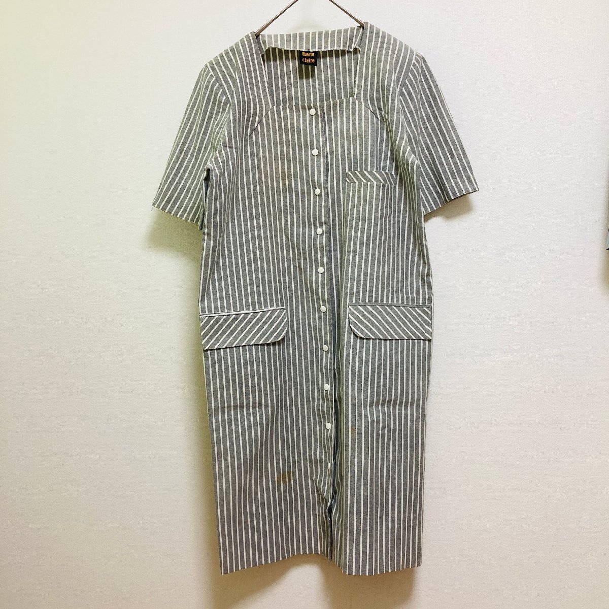 marie claire マリクレール フロントボタン タイプ ワンピース ストライプ グレー/ホワイト