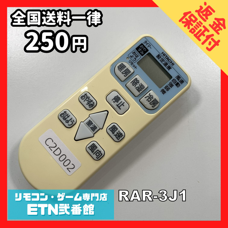 C2D002 【送料250円】エアコン リモコン / 日立 ヒタチ HITACHI RAR-3J1 冷房 暖房 動作確認済み★即発送★