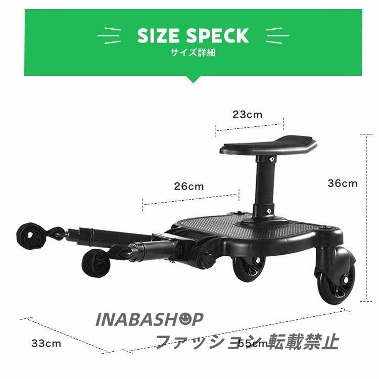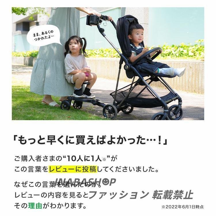 ベビーカーやバギーの後ろフレームに取り付けて、お子様を乗せて移動するための立脚ボードです。