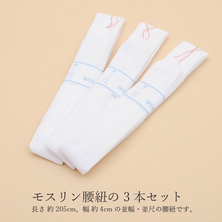 モスリンの腰ひも3本セット 価格もお手頃ですので大人気商品です。練習用としても惜しみなく使えます。 |