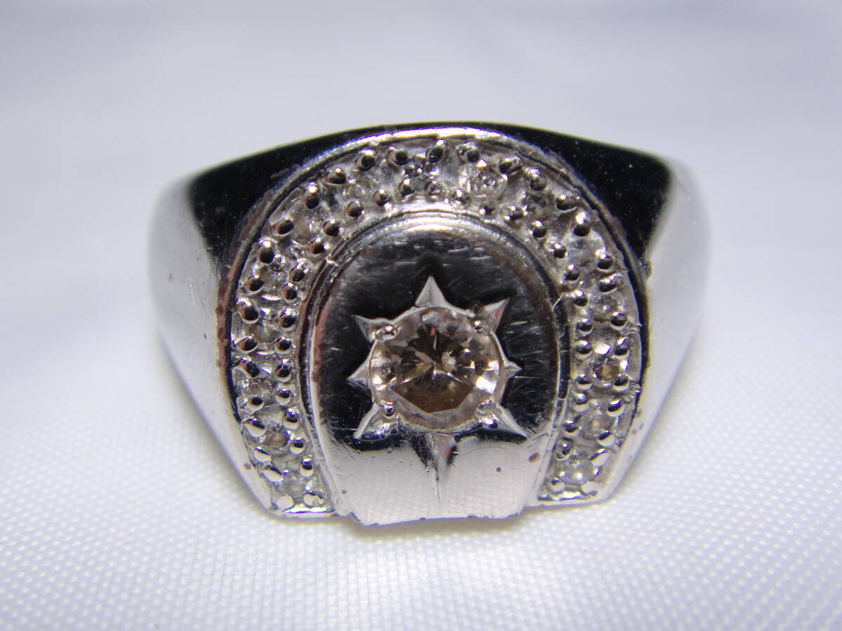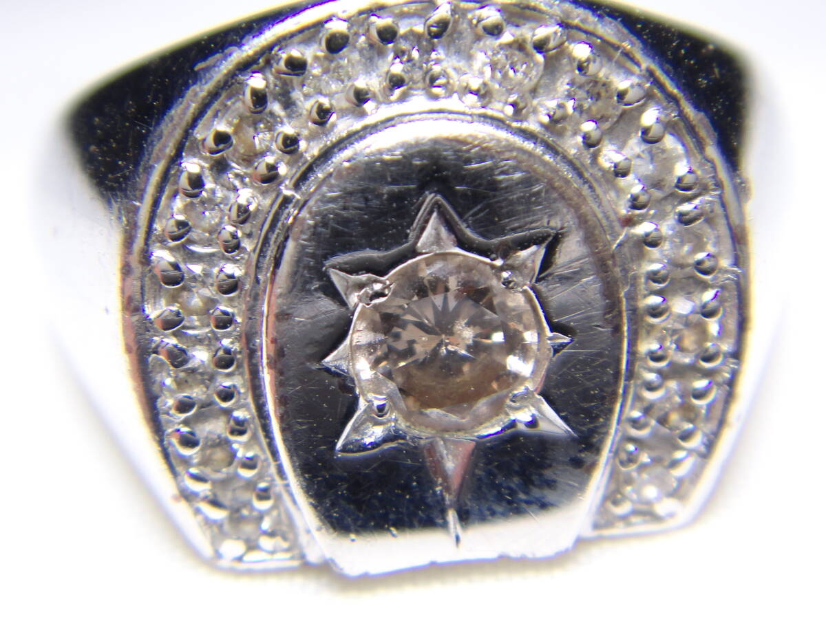 銀製 ダイヤモンドリング 指輪 メンズ 0.35刻印 内径約19.5㎜ ダイヤ16石 レトロ ヴィンテージ アンティーク I419