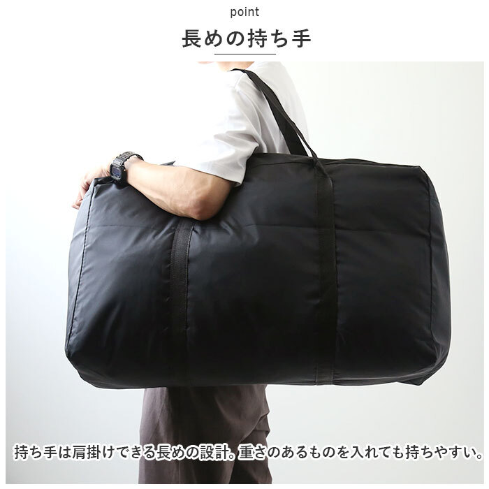 商品説明 | ・・とにかく入る大容量!軽量設計で折りたたんでコンパクトにもできる◎「大容量ボストンバッグ」が登場。 ・【大容量サイズ】 ・とにかく入る安心の大容量サイズ。無駄のないシンプルな作りで、収納力を最大限に。ガバっと開くダブルファスナー仕様で大きい荷物もすっぽり入る。 ・【いろいろな物を◎】 ・旅行カバンとしてはもちろん、スポーツ用品やアウトドア用品の収納、ランドリー収納、防災備蓄品の収納、寝具の収納などいろいろな物を収納可能。使えるシーンは無限大! ・【折りたたみOK】 ・軽く薄い生地を使用してるので、コンパクトに折りたたむことができる!使わない時は場所を取らずにしまえる。持ち運びにも便利。 ・【長めの持ち手】 ・持ち手は肩掛けできる長めの設計。重さのあるものを入れても持ちやすい。 ・【ユニセックスで使える】 ・ベーシックなカラーとカジュアルなデザイン。性別年齢を問わずに使えるアイテムなので、ファミリーで使うのもGOOD。 |