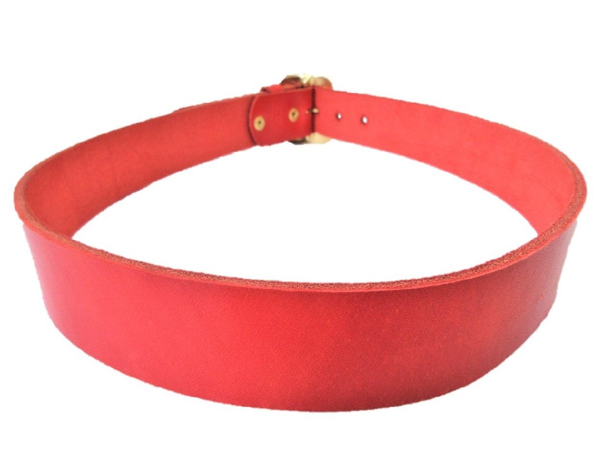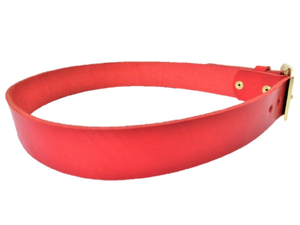 ベルトの幅は40mm、革の厚みは 4mm(多少の誤差はあります。)色は赤色です。