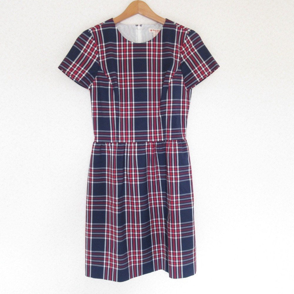 商品名:Brooks Brothers ブルックスブラザーズ レッドフリース ストレッチ 半袖 チェック柄ワンピース 38 ネイビー