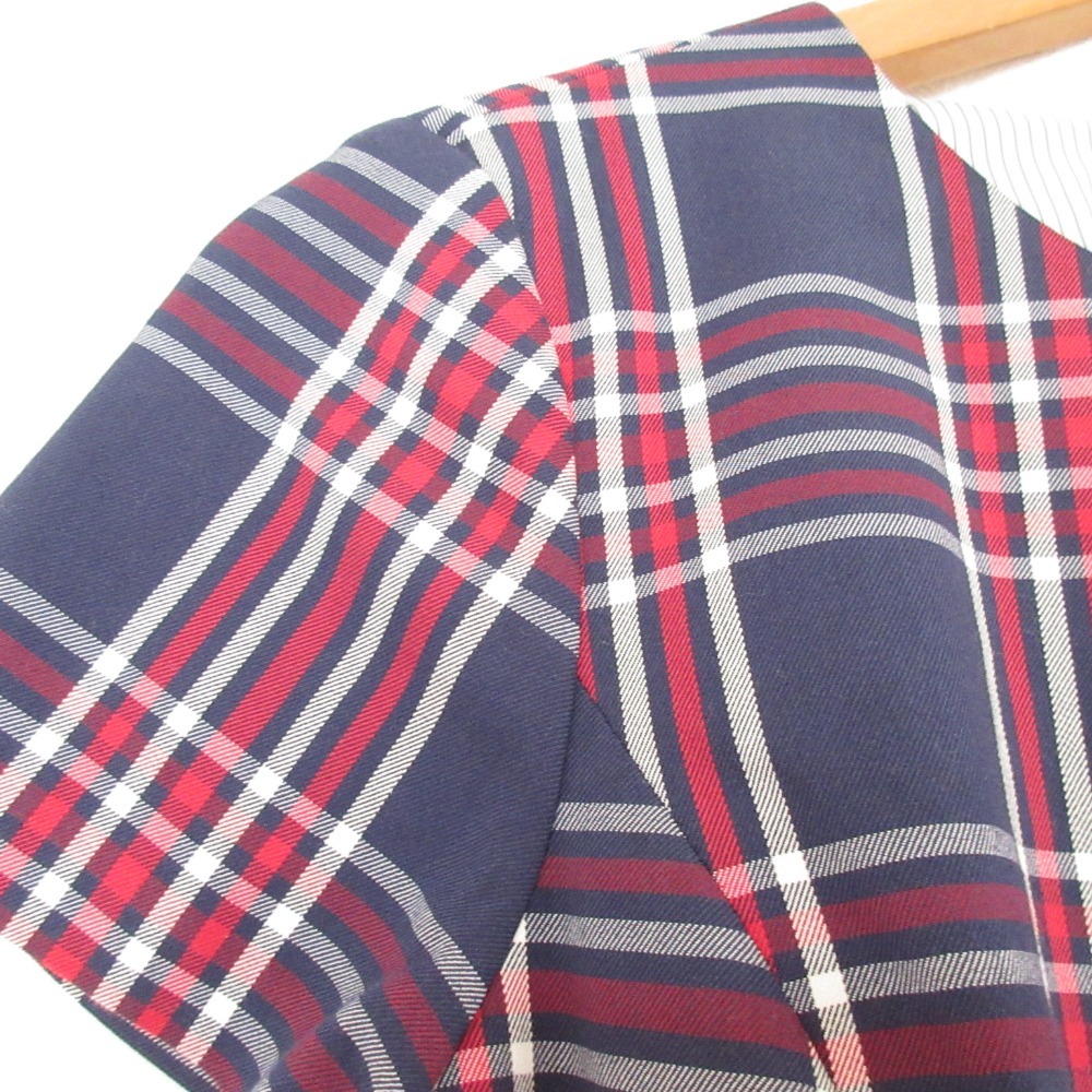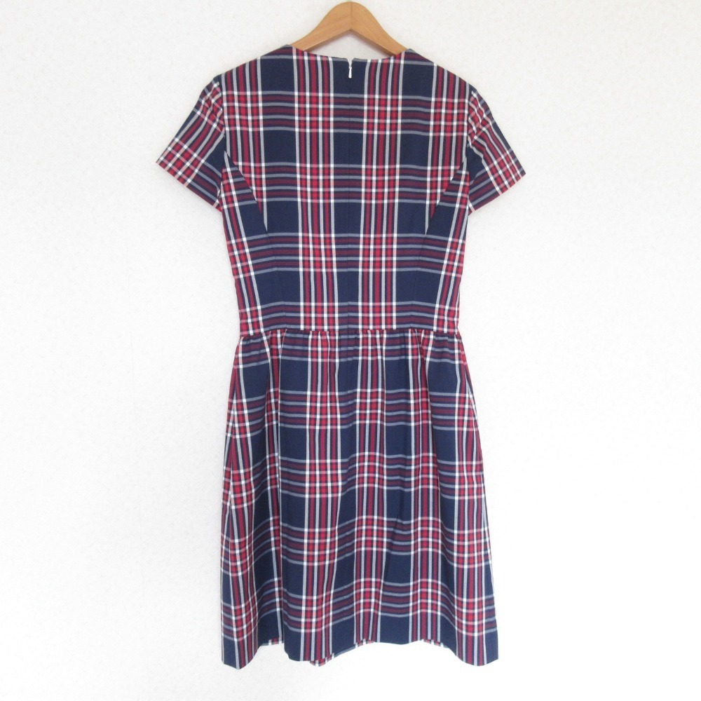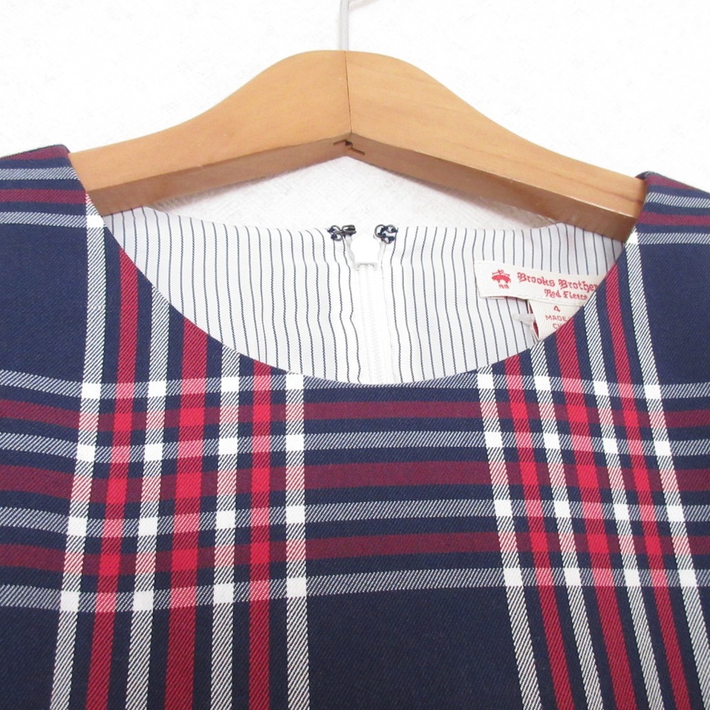 未使用 Brooks Brothers ブルックスブラザーズ レッドフリース ストレッチ 半袖 チェック柄ワンピース 38 ネイビー