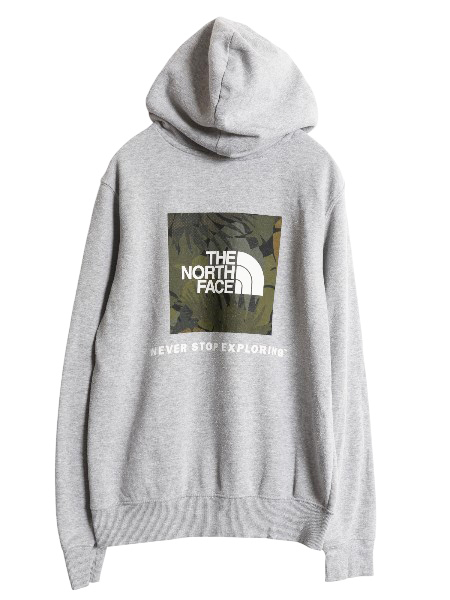 商品名 | ノースフェイス 両面 プリント スウェット フード パーカー メンズ S 古着 プルオーバー トレーナー 裏起毛 グラフィック ボックスロゴ 灰 |