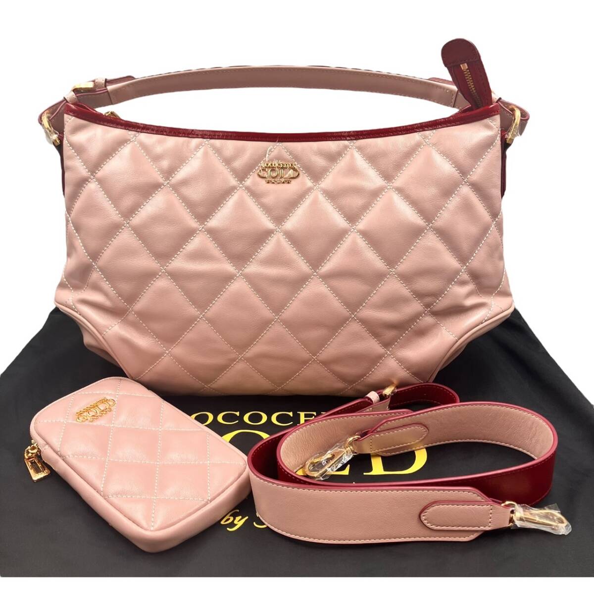 ココ セリュックス ゴールド 2WAY ショルダーバッグ レザー ピンク×レッド ゴールド金具 ポーチ付き レディース |